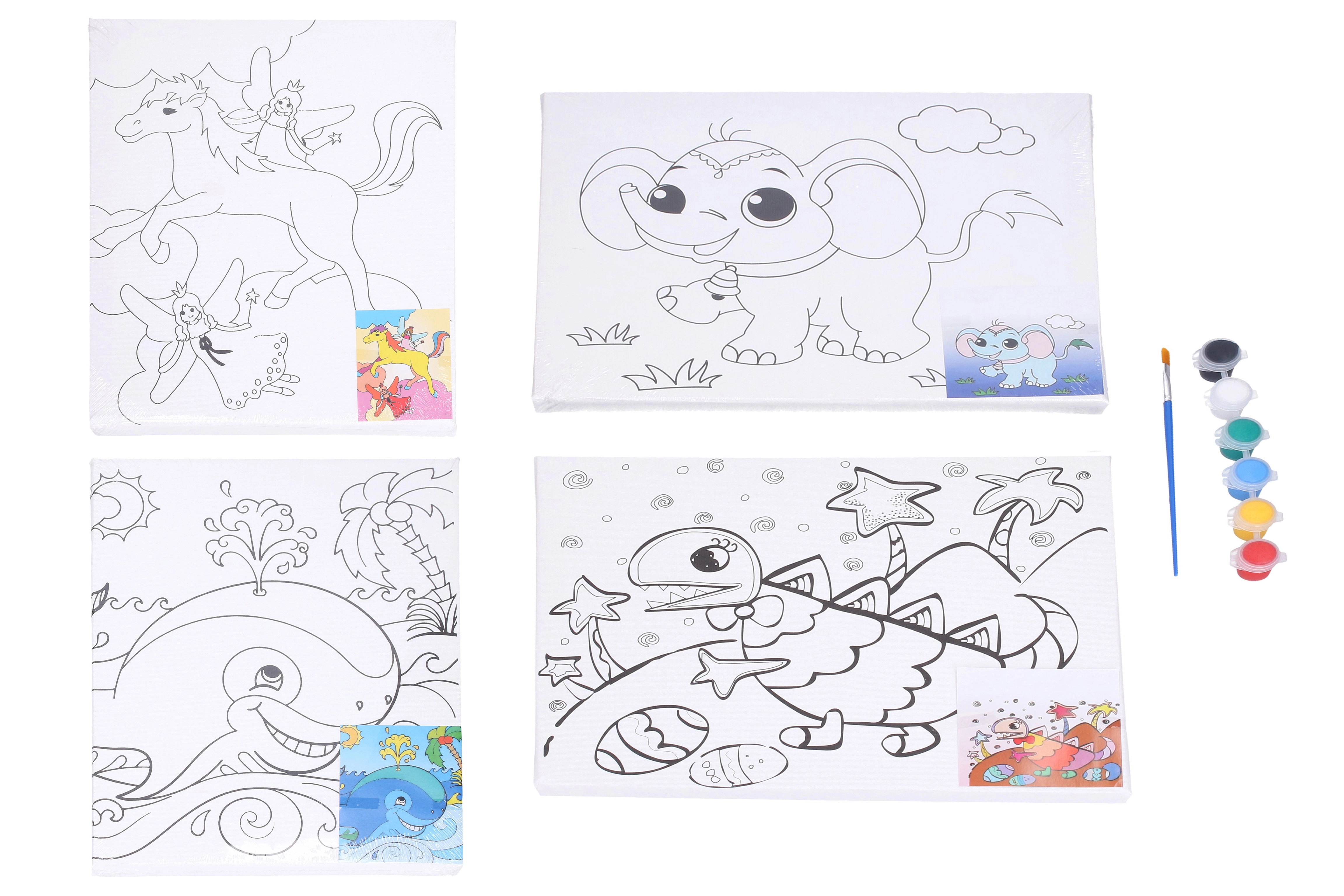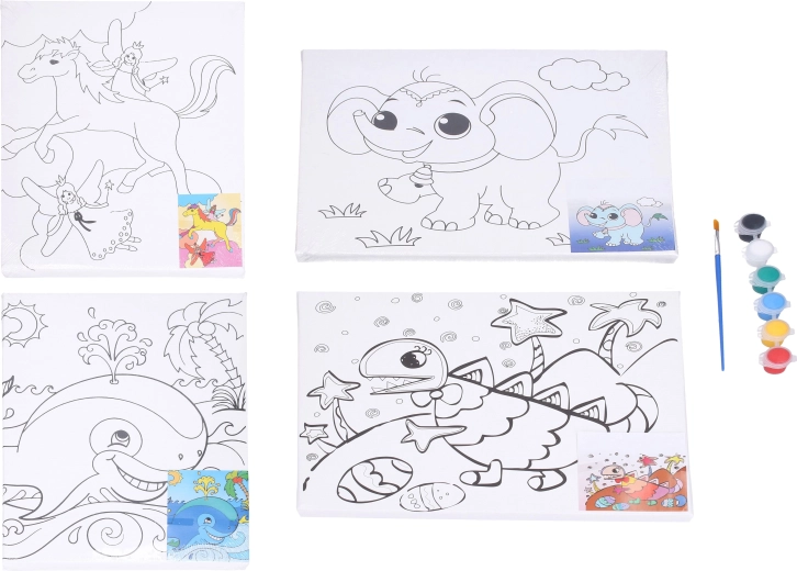 Objavte kreatívnu sadu pre malých aj veľkých maliarov: maliarske plátno s predlohou s rozmerom 30 × 24 cm doplnené o farby a štetec. Ideálne pre začiatočníkov aj deti – stačí nasledovať predlohu a vytvoriť si vlastný obrázok. Na výber sú motívy dinosaurus, veľryba, slon a kôň.