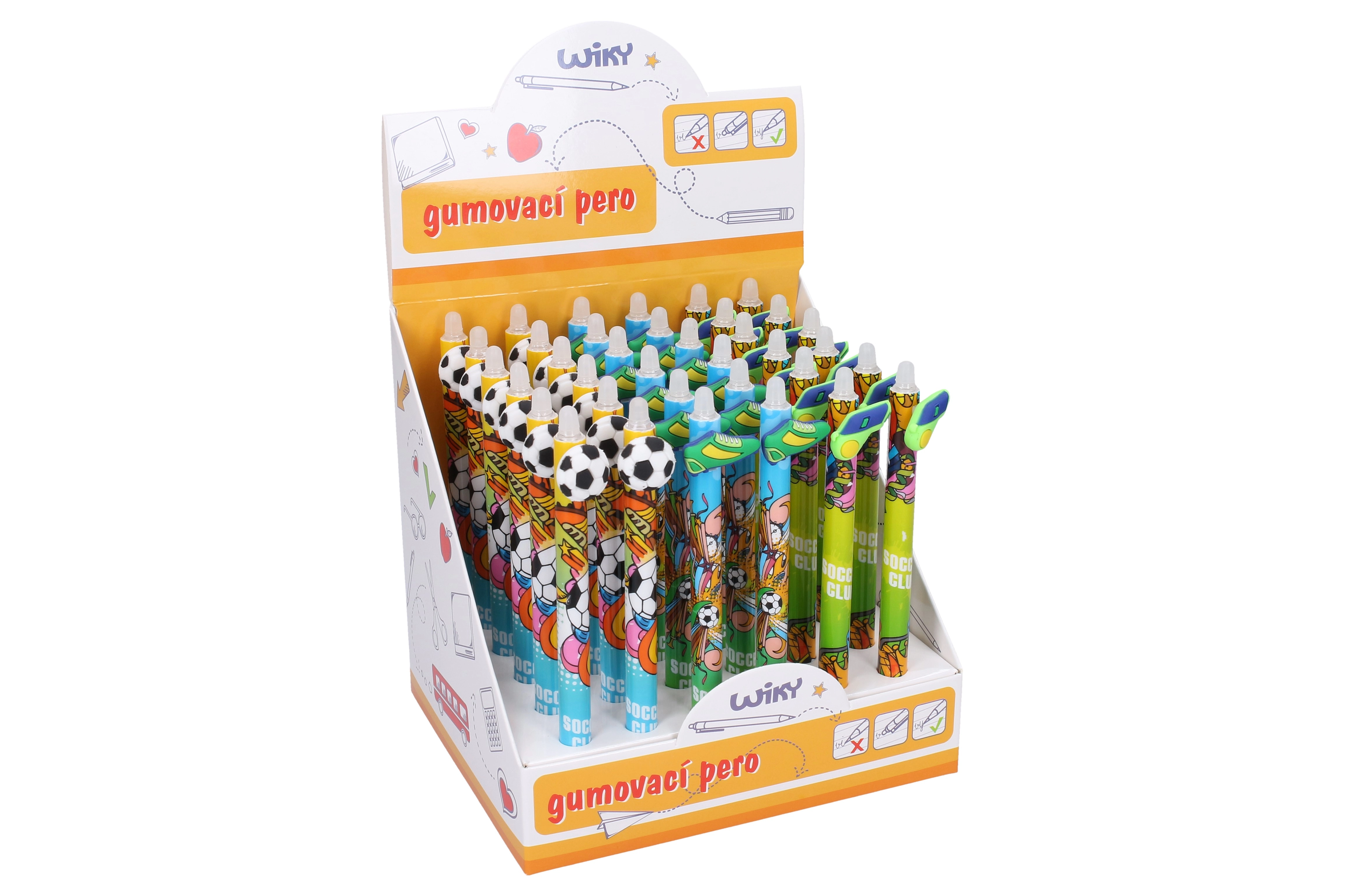 Objavte zábavné a praktické písanie s gumovacím perom v futbalovom štýle. Pero má kvalitný atrament, ktorý možno ľahko vymazať špeciálnym gumovacím koncom, takže sa hodí do školy, do kancelárie aj na voľný čas.