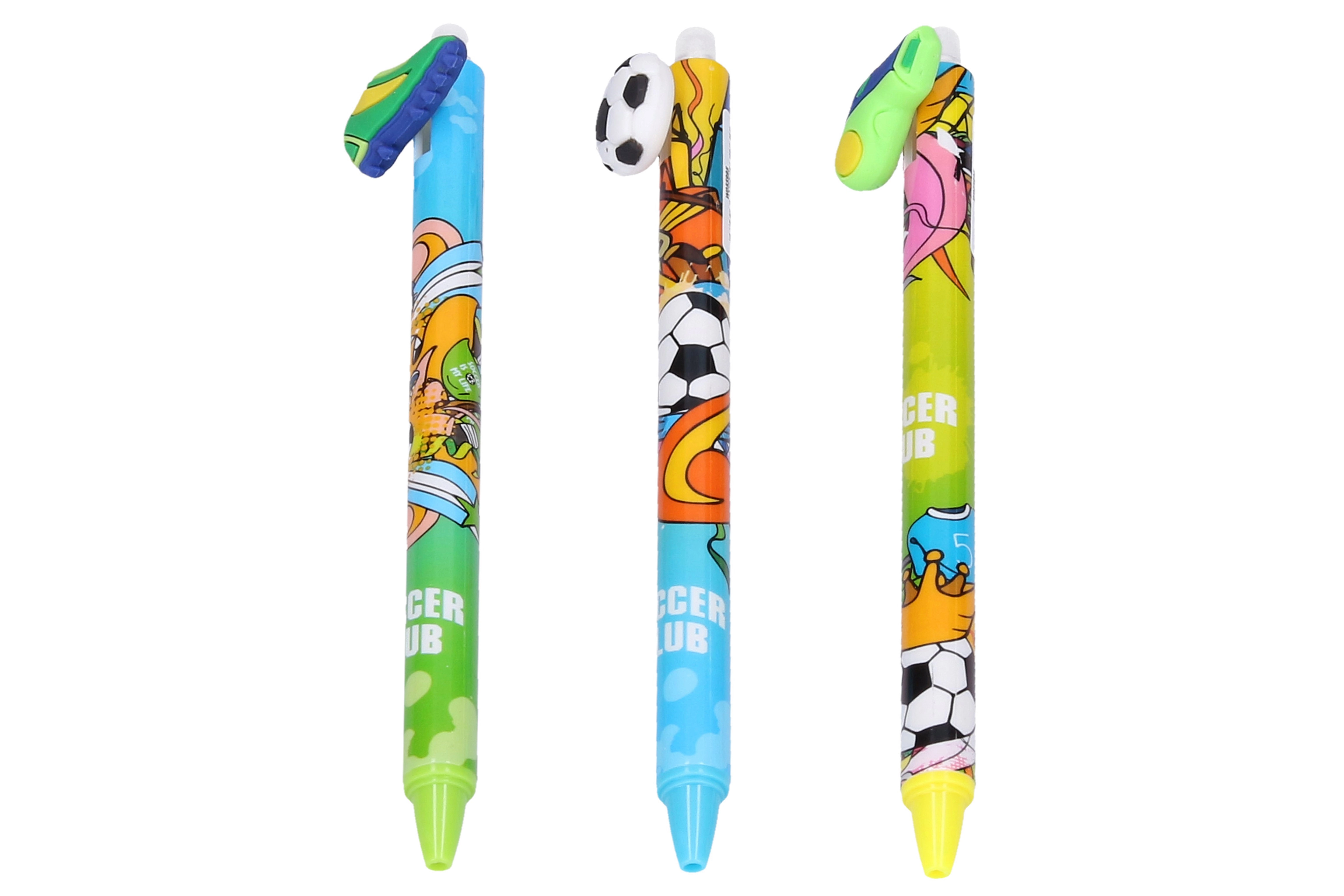 Štýlové gumovacie pero s futbalovým motívom prináša pohodlné písanie a možnosť jednoduchého opravenia chýb. Vďaka hrotu 0,7 mm píše hladko a čisto a s dizajnmi ako futbalová lopta, píšťalka a kopačka poteší každého fanúšika futbalu.