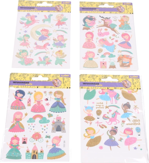 Rozžiarte detskú fantáziu s dočasnými tetovacími obtlačkami v dievčenských motívoch. Vďaka jednoduchej aplikácii vodou sú vhodné aj pre najmenších používateľov a poskytujú bezpečnú zábavu bez trvalých stôp. Veľkosť hárku 10,5 × 15 cm ponúka dostatok motívov na zdieľanie s kamarátmi.