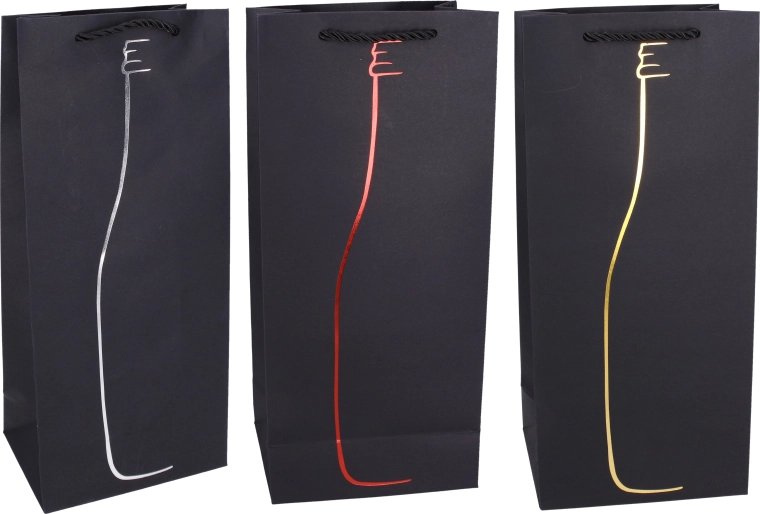 Štýlová darčeková taška na víno či iné nápoje vo veľkosti M poskytuje elegantné balenie na každú príležitosť. Vďaka rozmerom 17 × 38 × 9 cm je ideálna pre väčšinu fliaš. K dispozícii sú 3 varianty prevedenia, ktoré potešia svojím univerzálnym celoročným dizajnom a pevnou konštrukciou pre bezpečné prenášanie.