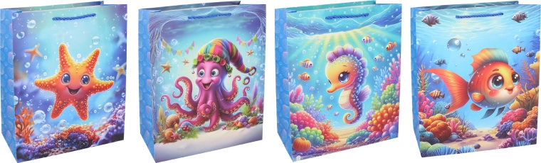 Roztomilá detská darčeková taška vo veľkosti M s rozmermi 26 × 32 × 10,5 cm je ideálna na balenie darčekov k narodeninám, meninám aj oslavám. Ponúka 4 veselé varianty a pevné prevedenie na bezpečné prenášanie.