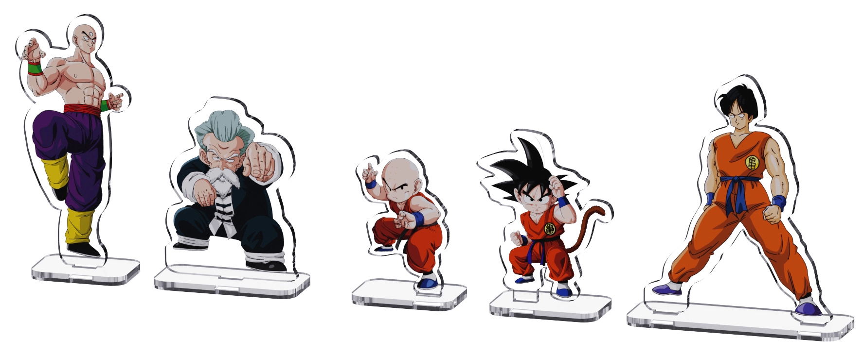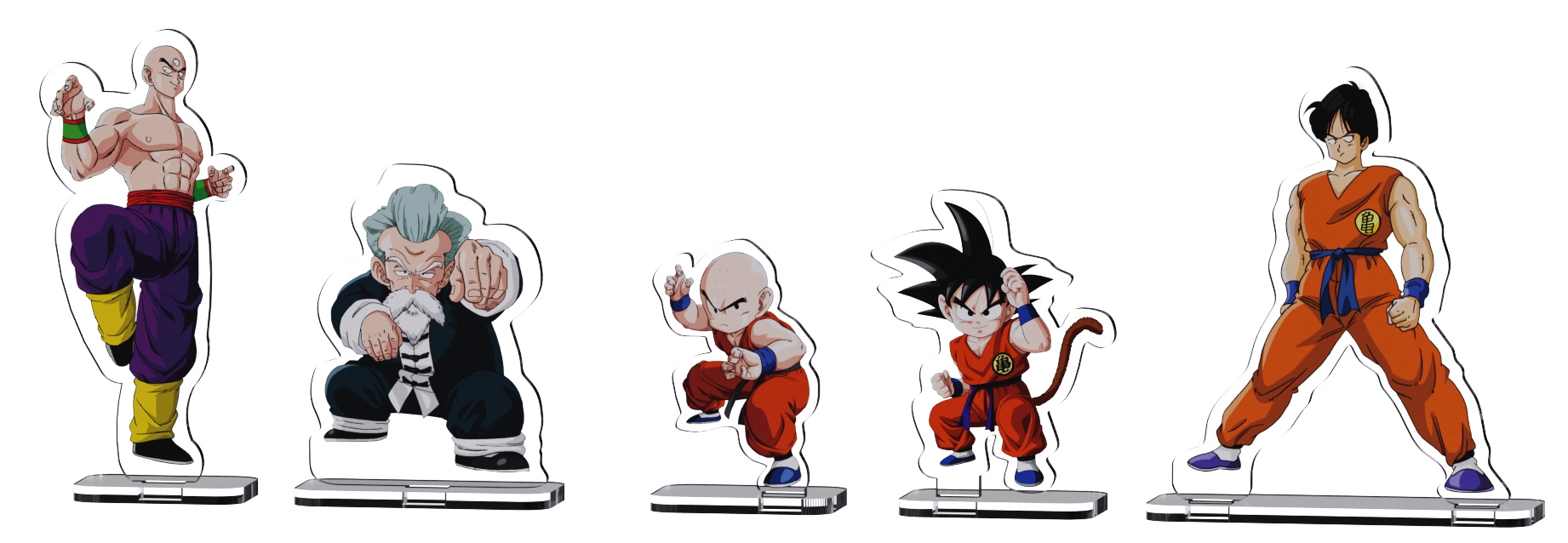 - 5 akrylových figúrok: Goku, Jackie Chun, Yamcha, Krillin, Tenshinhan pre dynamické aranžovanie.