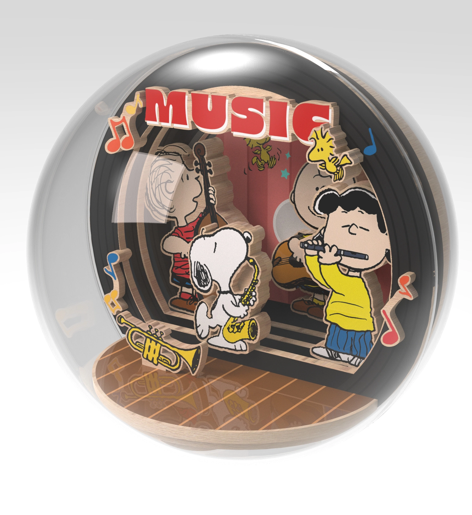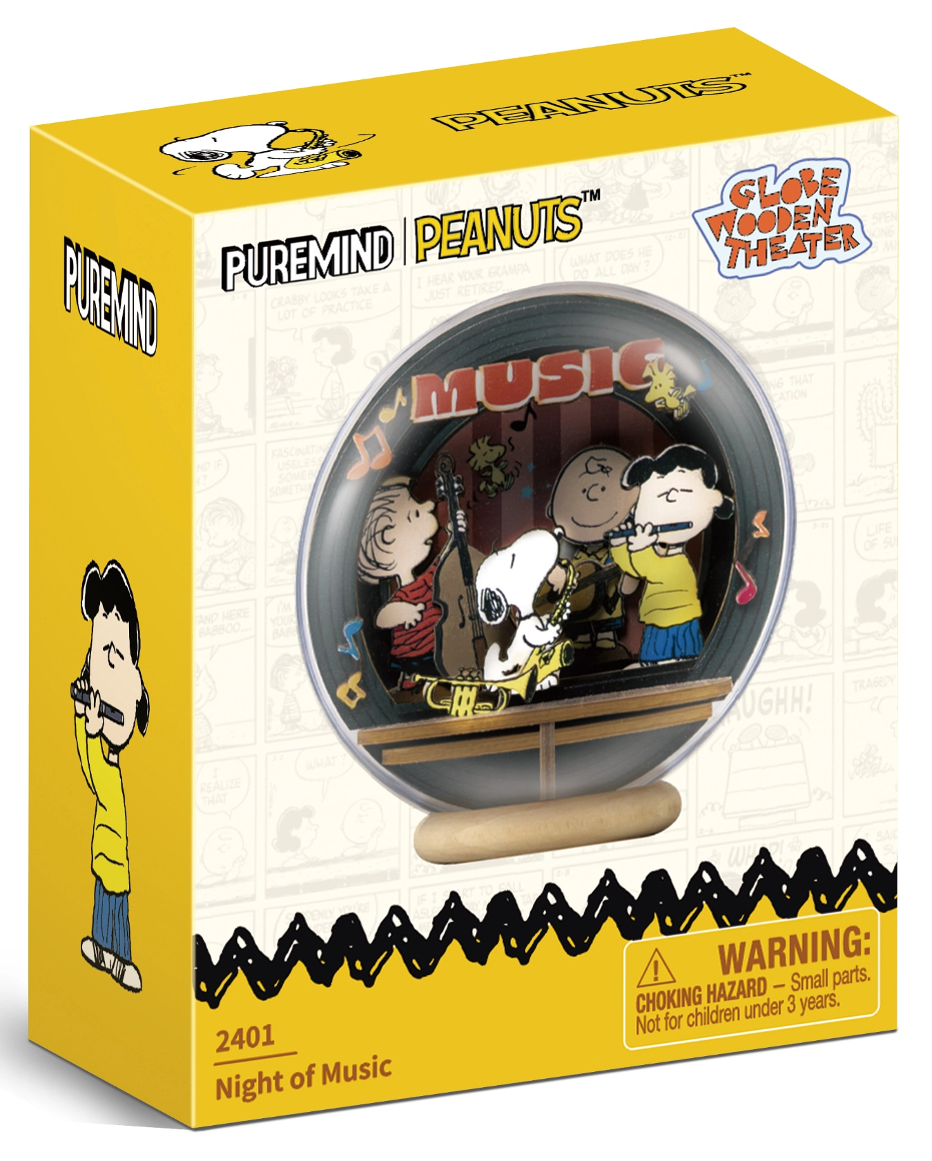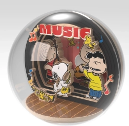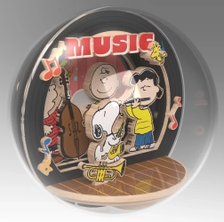 Tento licencovaný DIY set prenáša atmosféru komiksového sveta PEANUTS do elegantného dreveného modelu. Vo vnútri akrylátovej kupoly vznikne mini scéna Night of Music, kde Snoopy a jeho priatelia hrajú večerný koncert. Vďaka priehľadnému krytu je scéna viditeľná zo všetkých strán a vytvára priestorový 3D efekt.