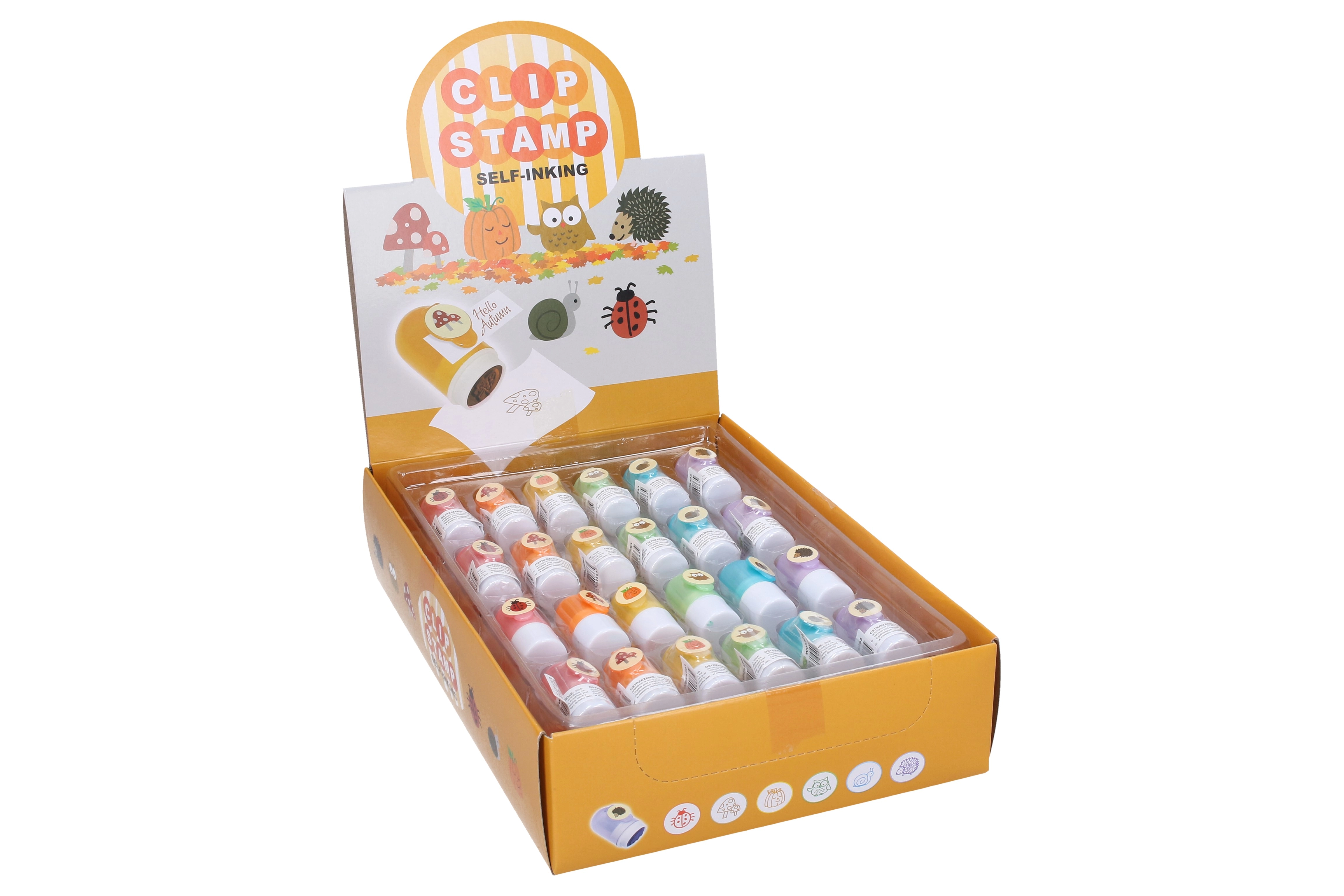 Objavte zábavné samonamáčacie pečiatky s klipom v hravom mixe motívov, ideálne pre deti, tvorenie a odmeny. Praktický klip umožní mať pečiatku vždy po ruke, 48 ks v display boxe je skvelé pre školy, kancelárie aj domáce použitie. Šesť veselých variantov: lienka, huba, tekvica, sova, slimák a ježko.