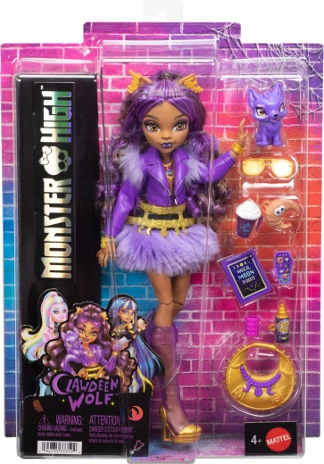 Objavte jedinečný štýl Clawdeen Wolf a preneste sa do sveta MONSTER HIGH. Bábika v ikonickom fialovom outfite so zlatými akcentmi zaujme prepracovanými detailmi a možnosťou kombinovať doplnky pre originálny vzhľad. V balení nájdete aj roztomilého miláčika Crescent, s ktorým budú príbehy ešte živšie.