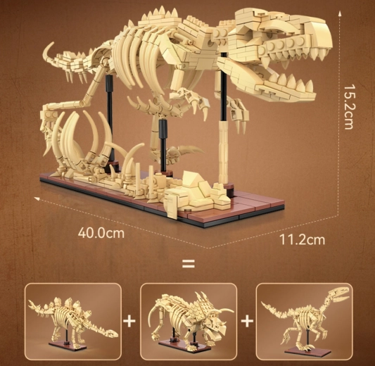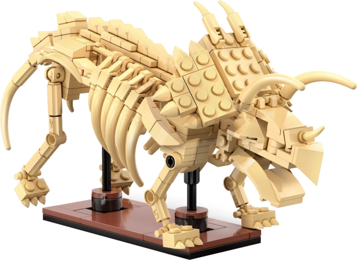 Postavte detailné kostry Triceratopsa, Stegosaura a Velociraptora z 825 dielikov a vystavte ich na stojanoch. Každý model má pohyblivé kĺby pre dynamické pózy.