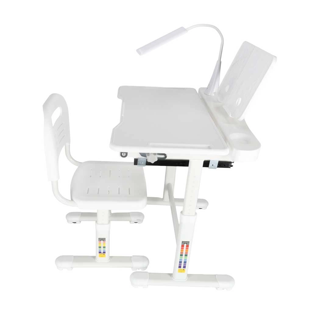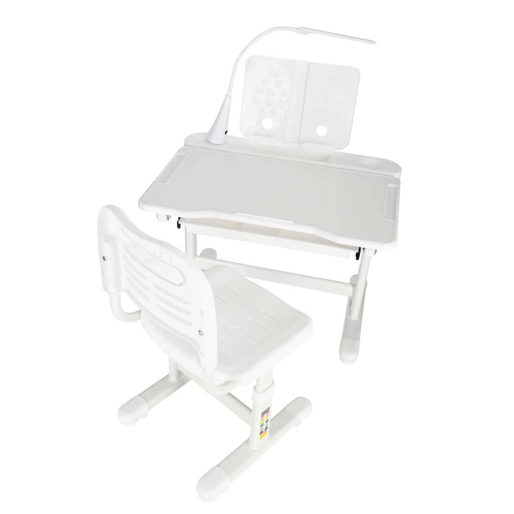 Táto moderná detská zostava rastie spolu s vaším dieťaťom: stôl s nastavením 53–71 cm a stolička s nastaviteľnou výškou sedu 28–40 cm sa ľahko prispôsobia postave aj aktivitám. Sklopná pracovná doska do 60° podporuje správnu ergonómiu pri písaní, čítaní aj kreslení a odľahčuje detskej chrbtici.