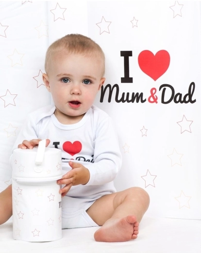 Oblečte svoje bábätko do originálneho a pohodlného body New Baby s nápisom I love Mum and Dad. Kvalitný bavlnený materiál je príjemný na dotyk, šetrný k citlivej detskej pokožke a zaisťuje celodenný komfort. Certifikované farby použité na potlač sú bezpečné pre najmenších.