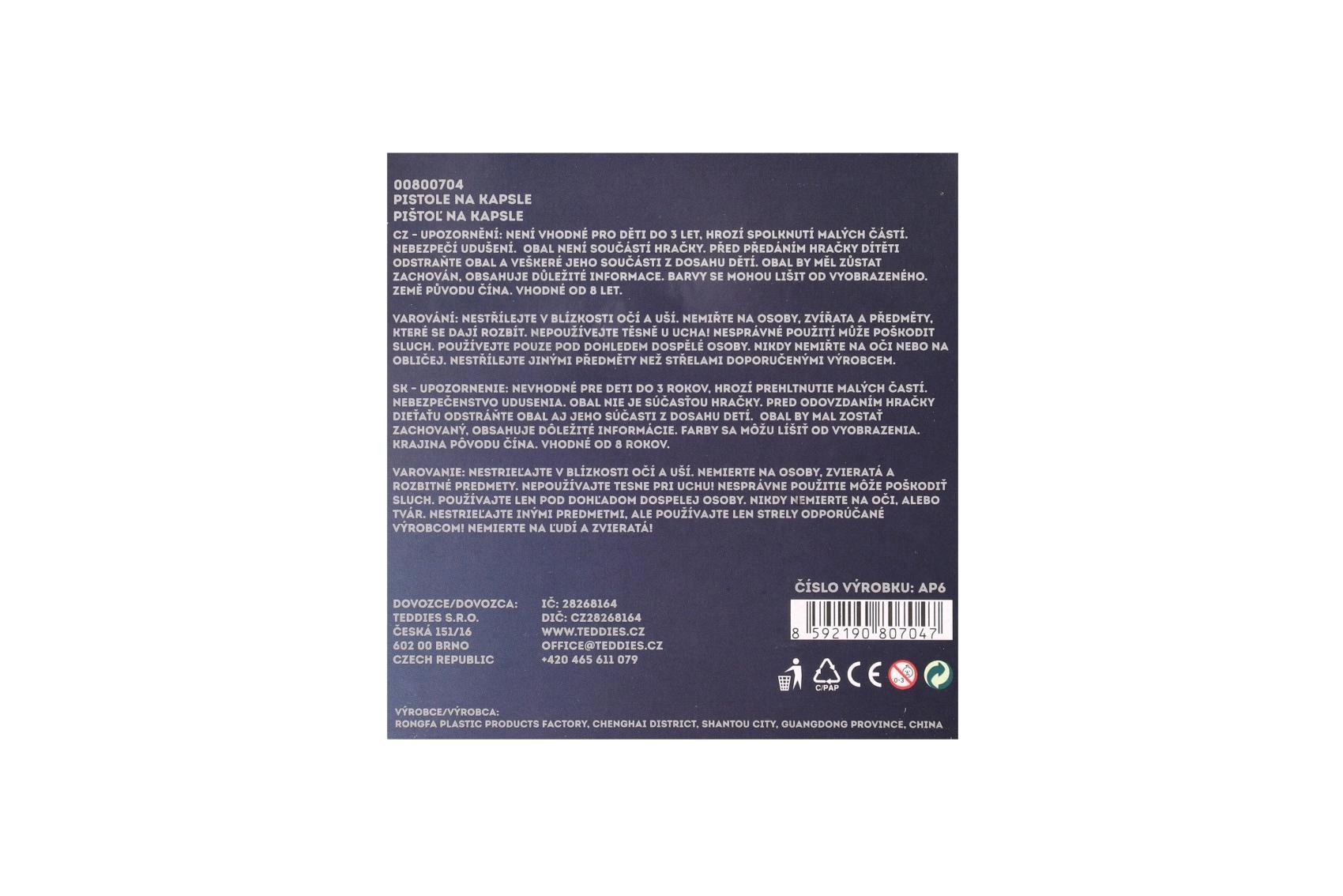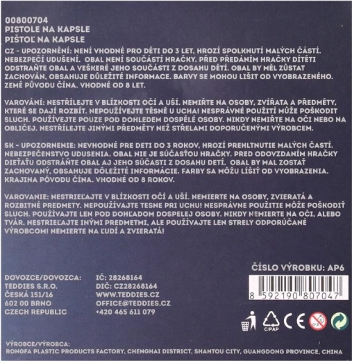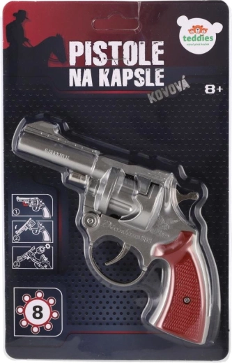 Táto kovová pištoľ na kapsle ponúka autentický pocit z hry bez rizika. Bubienok je určený pre kapsle s 8 ranami, ktoré po stlačení spúšte vydávajú zvukový efekt. Robustné kovové prevedenie a pohodlná rukoväť zaisťujú dlhú životnosť aj komfort pri držaní.