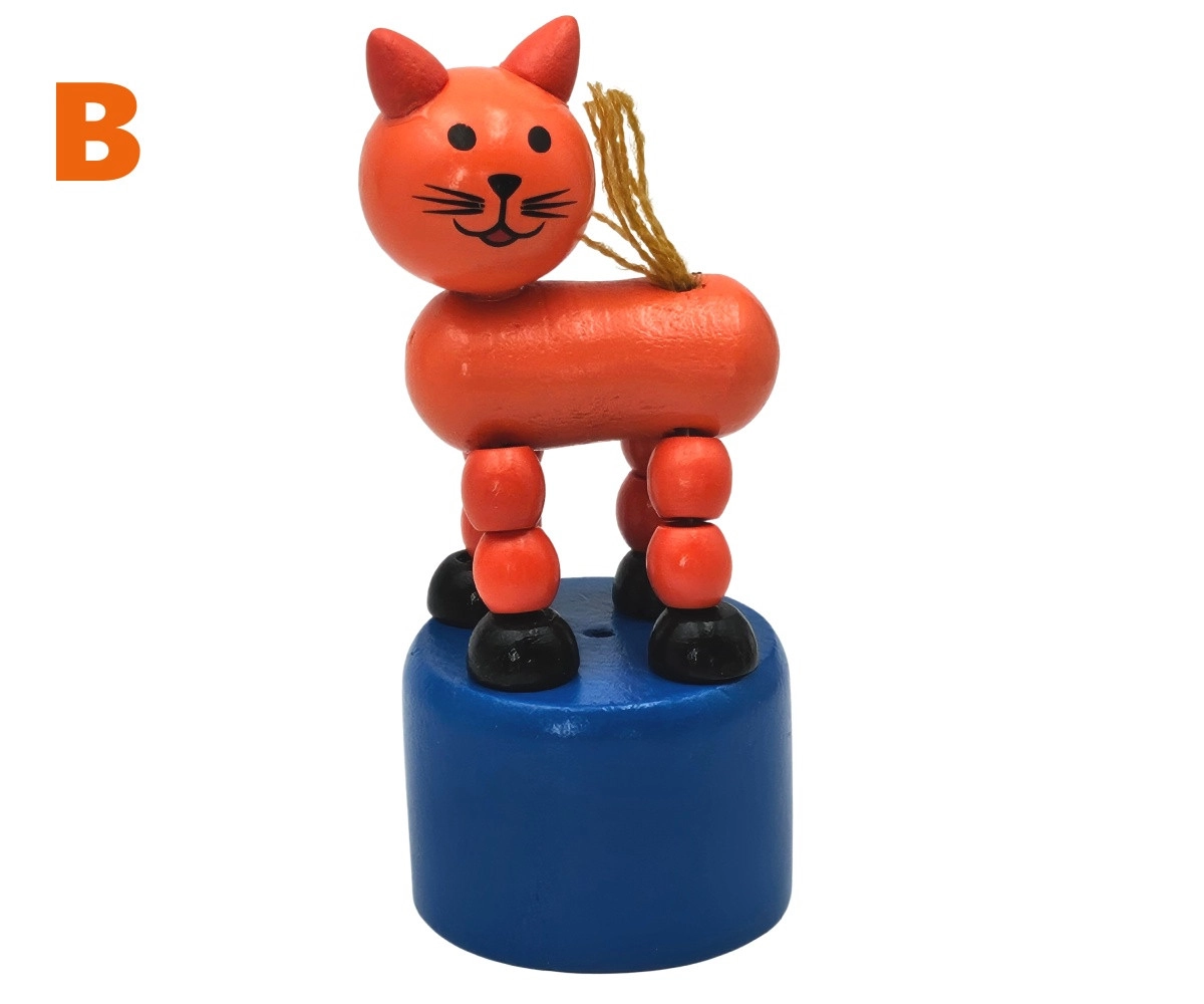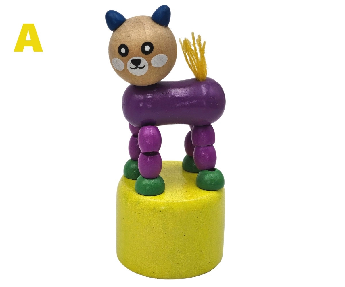 Roztomilé drevené tancujúce zvieratko poteší každé dieťa. Po stlačení podstavca sa veselé zvieratko pohupuje a „tancuje“. Dostupné v niekoľkých variantoch, kompaktná veľkosť 10 cm, cena za 1 kus. Vhodné pre deti od 3 rokov.