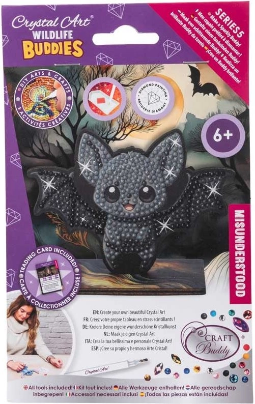 Táto kreatívna sada CRYSTAL ART s motívom netopiera je skvelým spôsobom, ako si oddýchnuť a zároveň vytvoriť krásnu trblietavú dekoráciu. Vďaka prehľadne označenej šablóne a samolepiacemu povrchu je proces lepenia kamienkov intuitívny a vhodný pre deti aj dospelých.