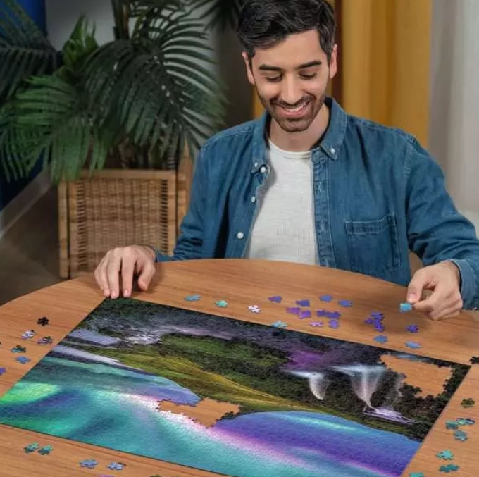 Motív „Čarovná noc na Islande“ zachytáva polárnu žiaru, vodopády a rieku v dychberúcich farbách. Puzzle s 1000 dielikmi je ideálnou voľbou pre pokročilých aj zdatných začiatočníkov, ktorí hľadajú relaxačnú zábavu aj mentálnu výzvu.
