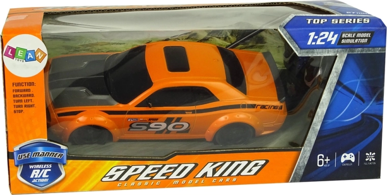 Užite si rýchlu jazdu s realistickým RC autom v mierke 1:24. Ľahká a odolná konštrukcia, športový dizajn, výrazná oranžová farba a jednoduché ovládanie dopredu/dozadu a do strán poteší malých aj veľkých pretekárov. Ideálna hračka na rozvoj jemnej motoriky a koordinácie.