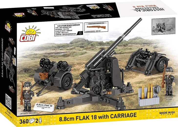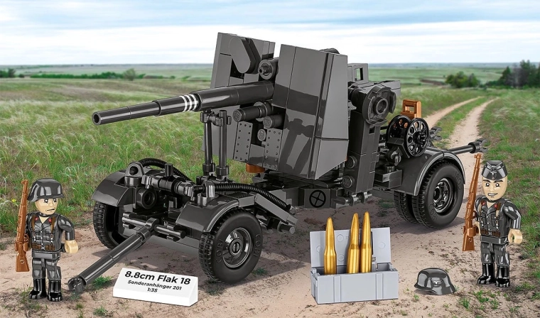 Postavte si legendárny nemecký kanón 8,8 cm FLAK 18 s detailným vozíkom a doplnkami. Stavebnica s 360 dielikmi ponúka realistické spracovanie, nastaviteľný námer a stabilný krížový podstavec – ideálne pre zberateľov, fanúšikov histórie aj milovníkov stavebníc.