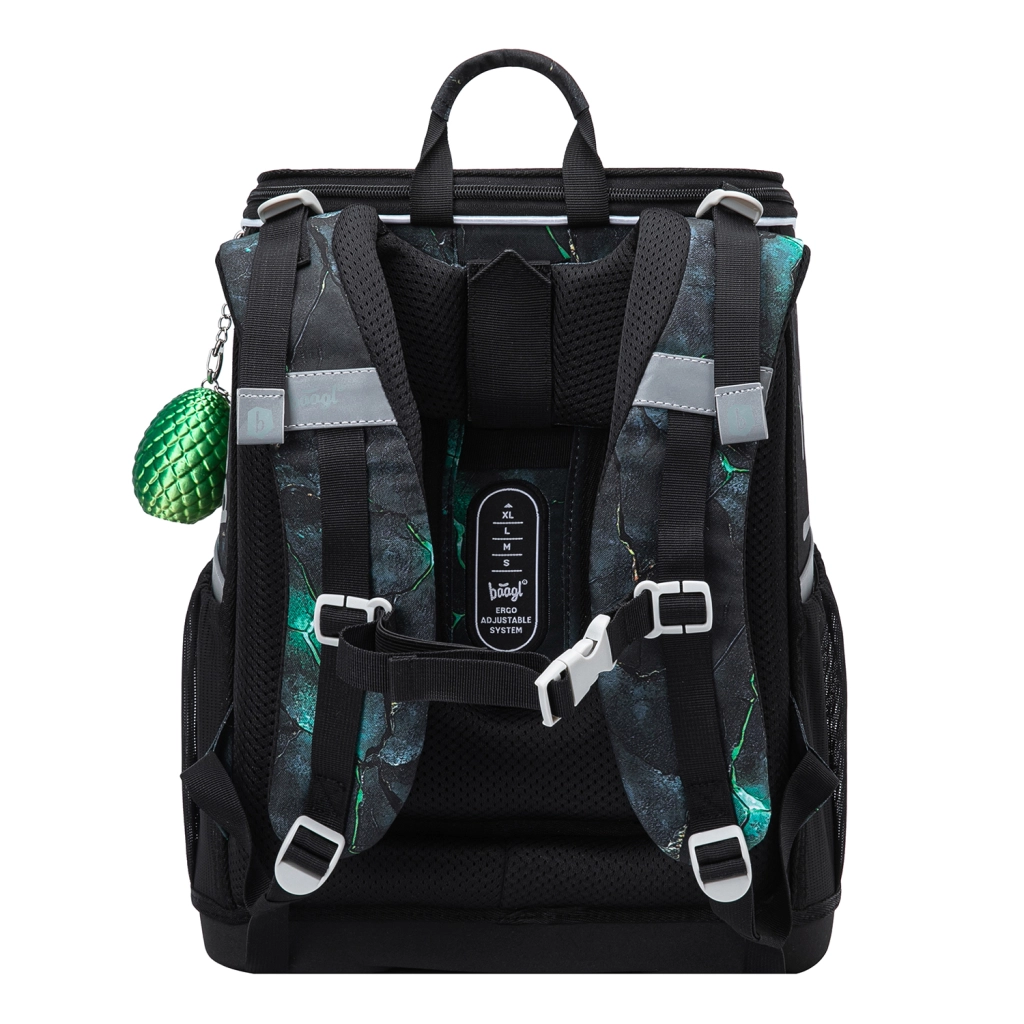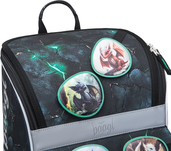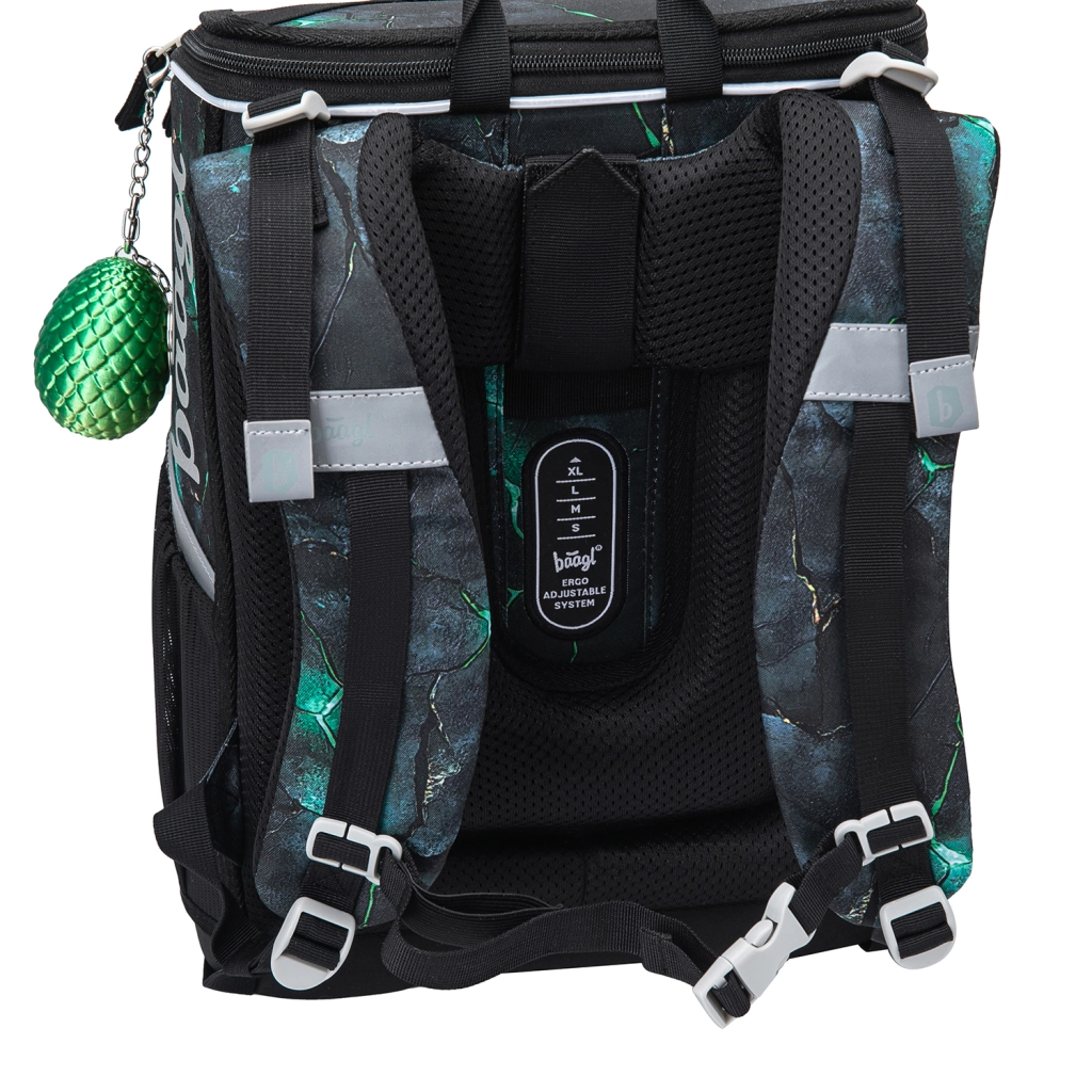 Školský set BAAGL Zippy Draci je navrhnutý pre pohodlie, bezpečie a dlhú výdrž pri každodennom nosení. Ergonomická aktovka s posuvným systémom ERGO ADJUSTABLE sa prispôsobí postave dieťaťa a vďaka reflexným prvkom zvyšuje viditeľnosť. Praktické detaily, ako výklopné otváranie, vnútorná gumička na fixáciu obsahu či pevné bočné vrecká na fľašu, zabezpečujú maximálny poriadok a ľahký prístup.