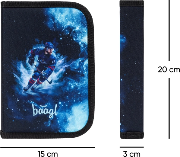 Kompletný školský set BAAGL Zippy Hokej pre 1. stupeň ZŠ zahŕňa ergonomickú aktovku, priestranný peračník a praktické vrecúško. Ponúka nastaviteľný chrbtový systém, bezpečnostné reflexné prvky, spoľahlivé zipsy YKK a odolné vodeodolné materiály s hokejovým motívom, ktoré deťom uľahčia každý školský deň.