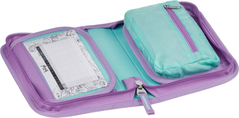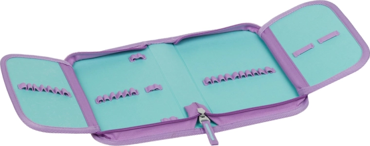 Praktický a štýlový školský peračník v jemnom dizajne Lavender od značky BAAGL poteší všetkých školákov. Ponúka klasické jednoposchodové prevedenie s dvomi chlopňami, odolný zips YKK, priestranné usporiadanie s vreckom na drobnosti a okienko na rozvrh hodín. Vďaka pevným gumičkám na pastelky a fixky a možnosti peračník celý rozložiť je dokonale prehľadný. Vyrobený z recyklovaného materiálu a dodávaný bez náplne.