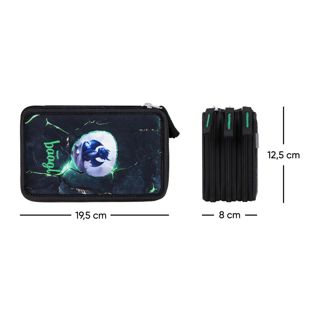 Objavte praktický a odolný trojposchodový peračník BAAGL s výrazným dračím motívom. Tri samostatné zipsové komory zaistia prehľadné uloženie všetkého, čo školák potrebuje – od pasteliek a fixiek až po pravítko a gumu. Značkové zipsy YKK a zosilnená konštrukcia zaručia dlhú životnosť aj pri každodennom používaní.
