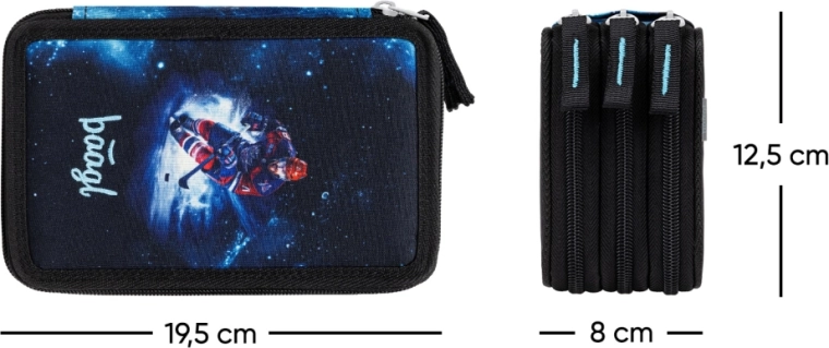 Peračník ponúka tri samostatné zipsové sekcie, ktoré uľahčujú organizáciu písacích potrieb, pravítok, gúm a drobných doplnkov. Zosilnený chrbát zlepšuje manipuláciu pri zatváraní a otváraní, takže sa peračník pohodlne používa aj plne naplnený.