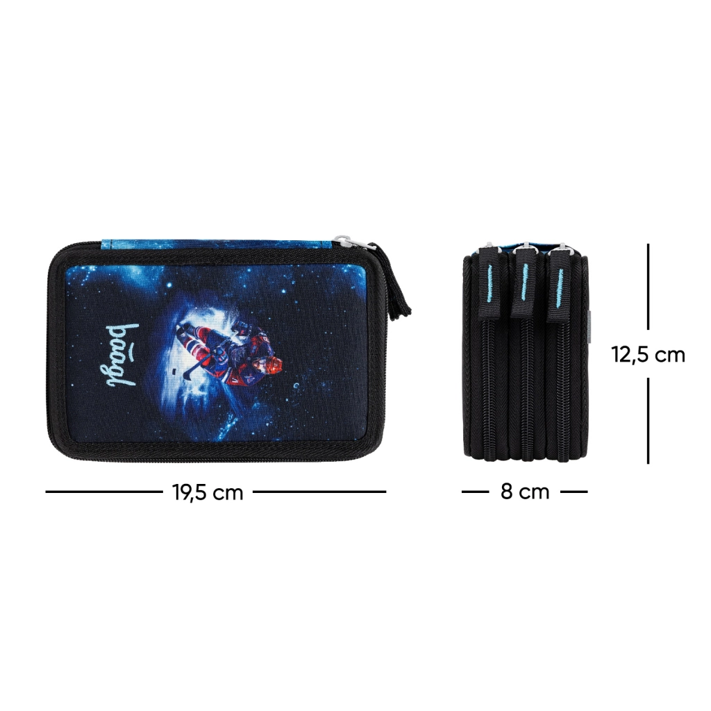 Oddelené zipsové sekcie umožňujú prehľadne uložiť ceruzky, pastelky, fixky aj drobné pomôcky, aby bolo všetko vždy po ruke.