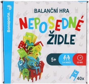 Neposedné stoličky sú skvelou balančnou spoločenskou hrou pre deti od 5 rokov, ktorá ponúka rôzne herné varianty. Hra obsahuje 32 plastových stoličiek a 8 stolčekov pre viac herných možností. Hranie len s jednou rukou alebo tvorba vlastných pravidiel prináša ďalšie výzvy a zábavu:
