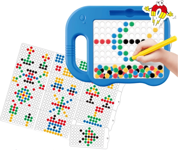 - Jednoduché použitie – magnetické pero a gombíky pre rýchle skladanie motívov.