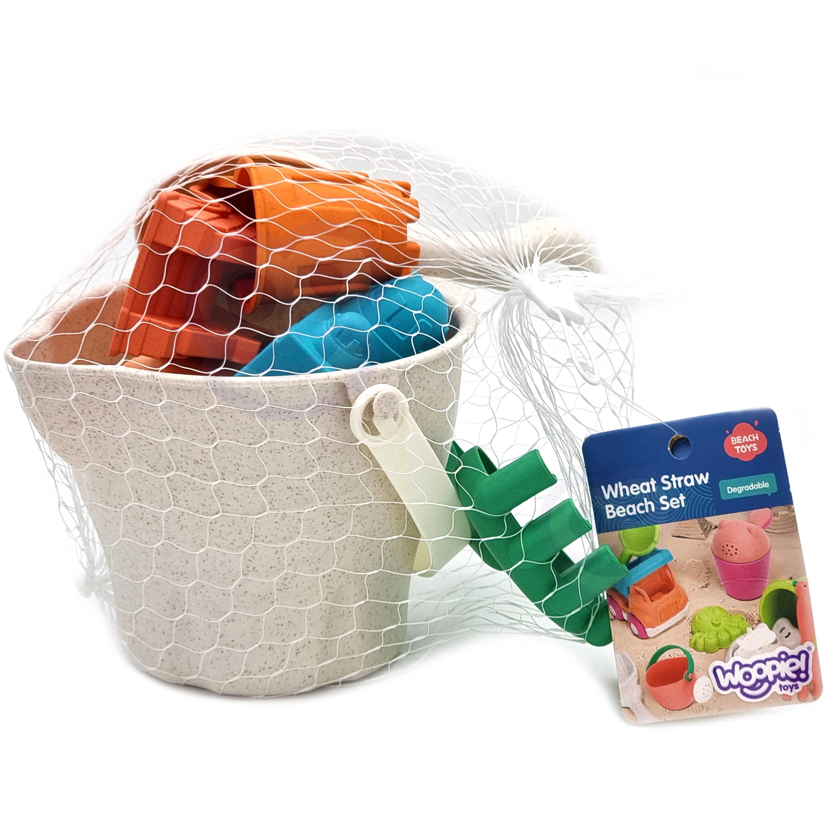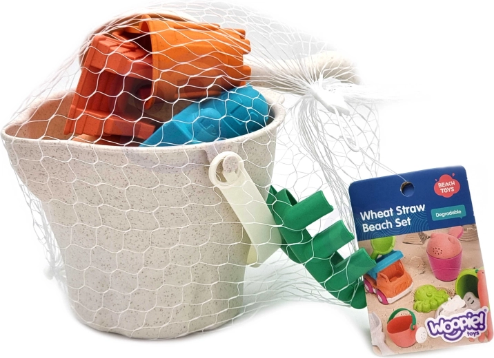 Detská sada na piesok WOOPIE GREEN prináša 8-dielny komplet na zábavu v pieskovisku, na pláži aj na záhrade. Obsahuje vedierko, kanvičku, 4 formičky, lopatku a hrable v trendy pastelových farbách. Vyrobené z organického, biologicky rozložiteľného materiálu vhodného na kompostovanie, s pohodlnými úchytmi a povrchom dezinfikovaným pri 120 °C pre maximálnu bezpečnosť.