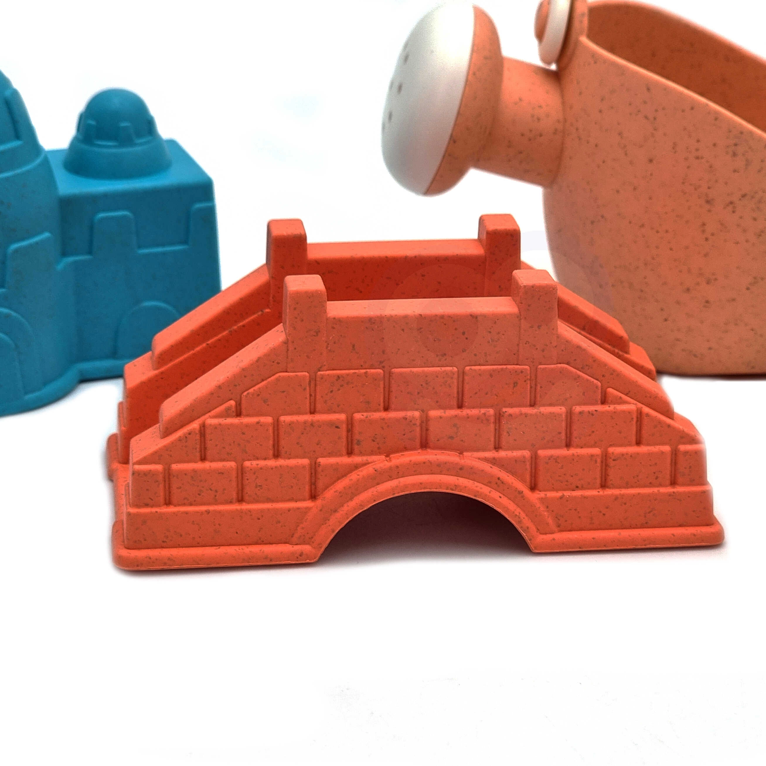 Formičky s motívmi hradieb a mosta pomáhajú deťom vytvárať pevné a detailné pieskové stavby – skvelé pre pieskovisko aj pláž.