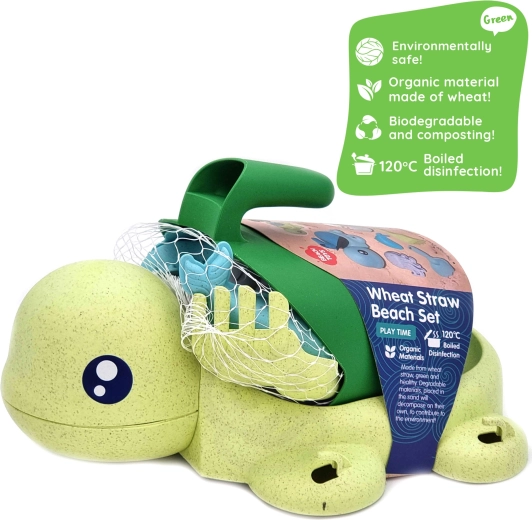 Sada Woopie Green korytnačka je ideálna na hranie v pieskovisku, na pláži, na záhrade aj vo vane. Vďaka odolnému, no ľahkému materiálu z pšeničnej slamy je set príjemný na dotyk, bezpečný pre deti a zároveň eco‑friendly. Korytnačkový košík a doplnky sa ľahko nosia, upratujú a podporujú kreativitu aj jemnú motoriku.