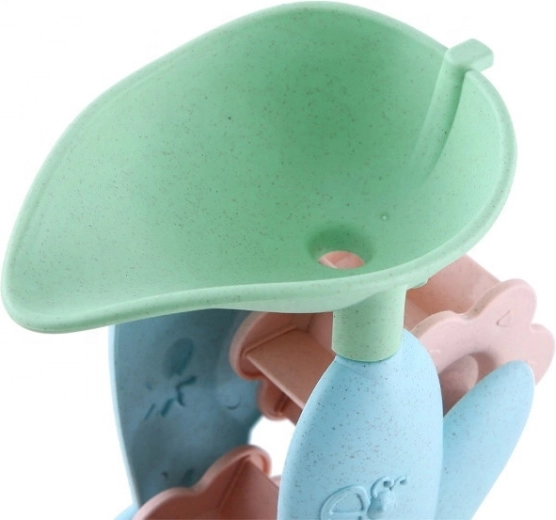Nalejte vodu alebo nasypte piesok do lievika a sledujte, ako sa krídelká roztočia. Interaktívny prvok zvyšuje zábavu a podporuje zmyslové vnímanie detí.