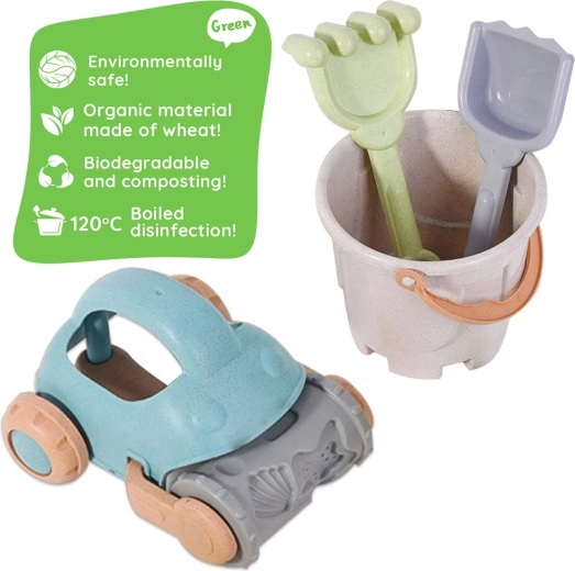 Táto ekologická sada na piesok od značky WOOPIE je vyrobená z organického materiálu na báze pšeničných vlákien, ktorý je biologicky rozložiteľný a kompostovateľný. Vďaka odolnému prevedeniu, zaobleným tvarom a ľahkej konštrukcii je skvelá pre malé detské ruky a bezpečnú hru vonku.