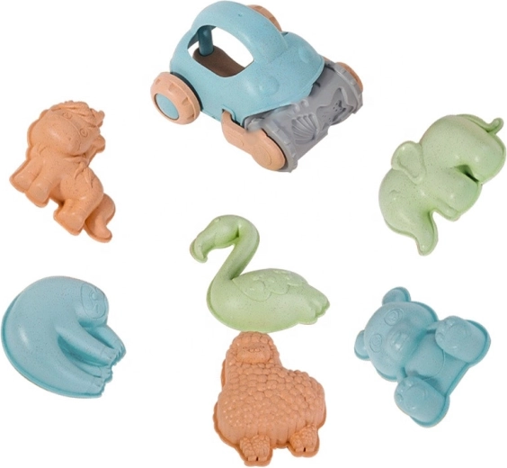 V balení nájdete všetko pre kreatívne stavanie a tvarovanie: vedierko s pevným držadlom, 6 zvieracích formičiek, lopatku, hrable aj zábavné autíčko s valčekom na odtlačky. Podporuje jemnú motoriku, koordináciu oko–ruka, priestorové myslenie a sociálne zručnosti pri hre s kamarátmi.