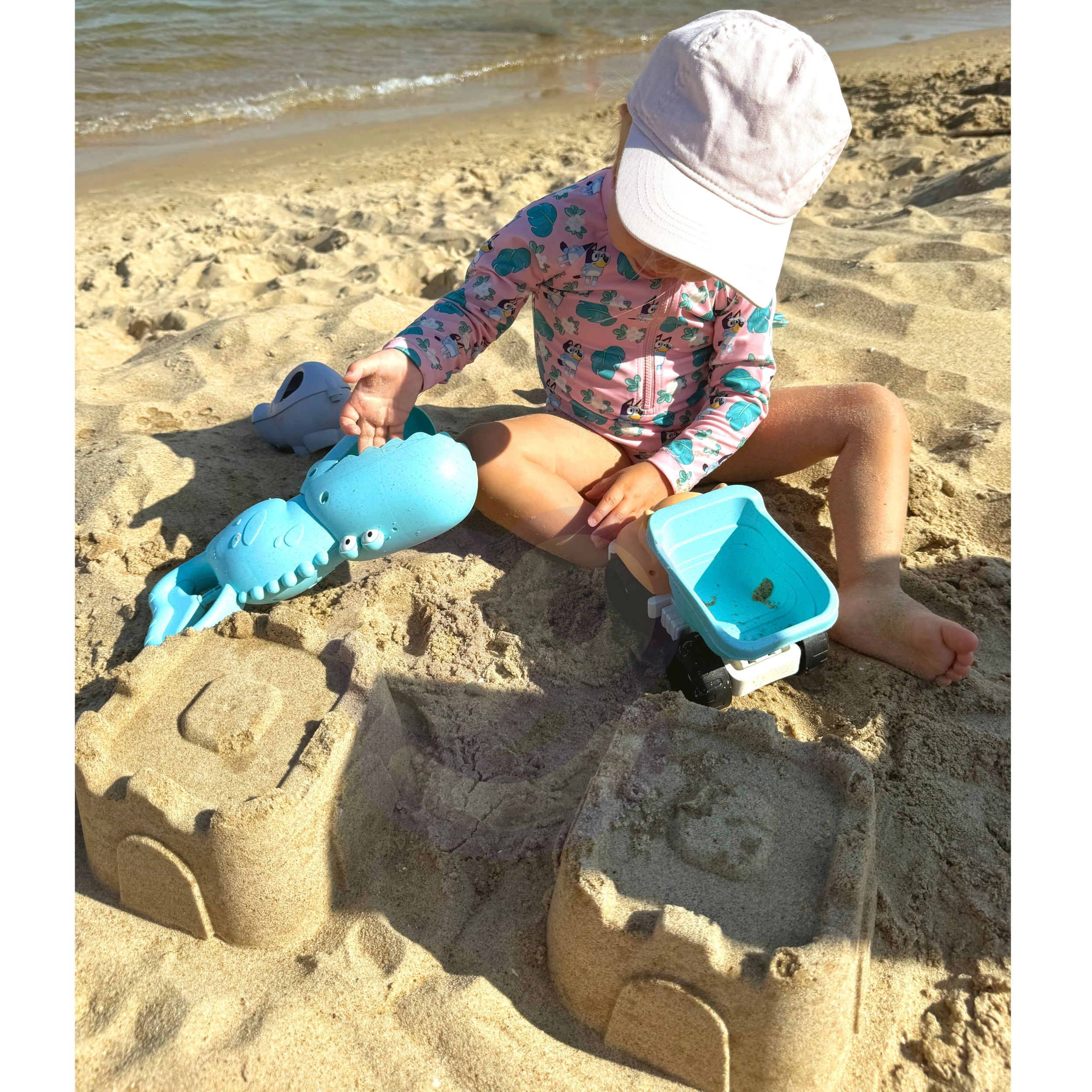Sada podporuje rozvoj detskej motoriky, koordinácie oko–ruka, predstavivosti a priestorového myslenia. Vďaka autíčku, krokodíliemu naberaču a formičkám deti stavajú hrady, presýpajú piesok aj vozia náklad. Všetky diely sú ľahké, s obľúbenými tvarmi zvieratiek a priateľskými obrysmi pre bezpečné hranie.