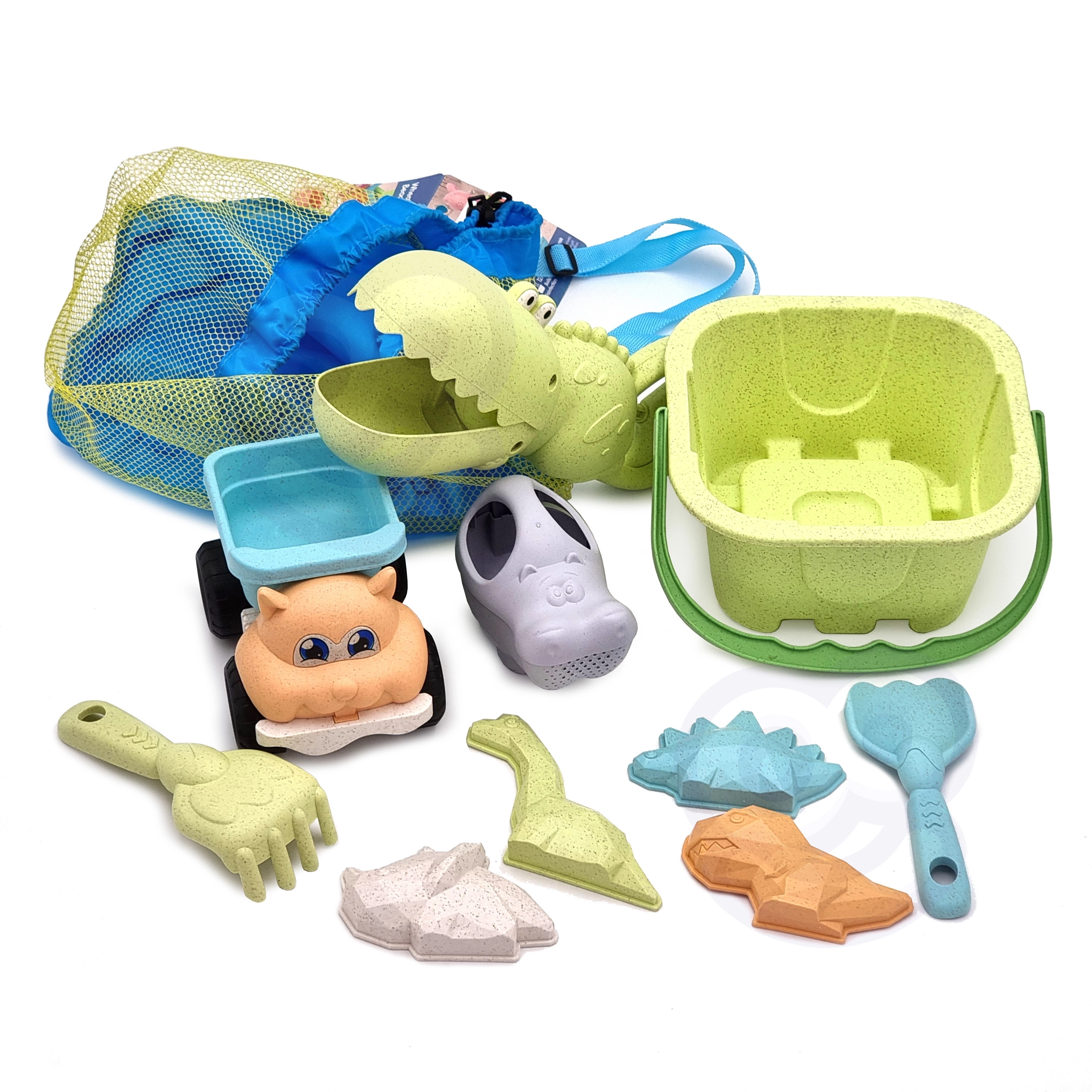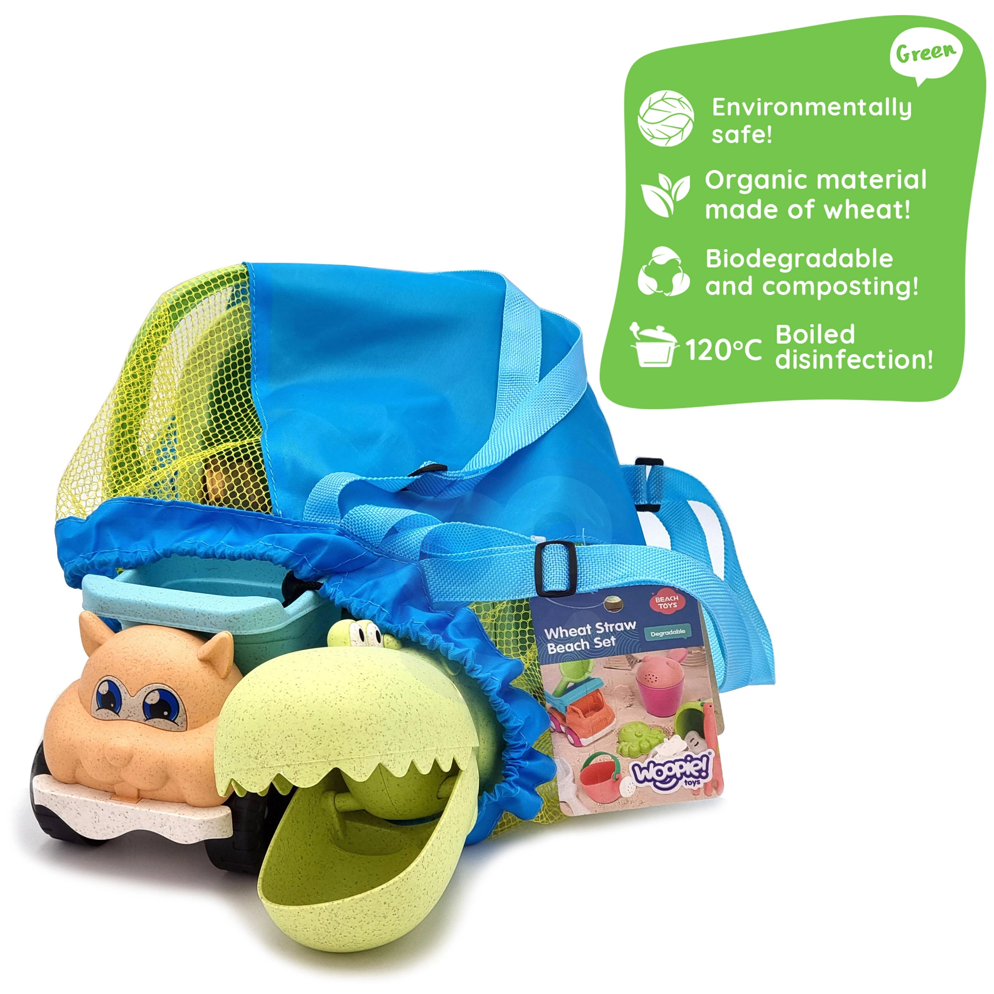 Objavte udržateľnú zábavu so sadou WOOPIE GREEN v moderných pastelových farbách. Organický materiál na báze pšeničných vlákien je biologicky rozložiteľný a kompostovateľný, takže si deti užijú tvorenie a vy máte dobrý pocit z ohľaduplnosti k prírode. Vzdušný sieťovaný batoh uľahčí prenášanie aj sušenie hračiek po hre pri vode.