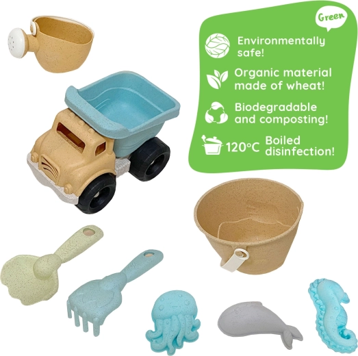 Objavte ekologickú zábavu v piesku so sadou WOOPIE GREEN. Tento 8-dielny set v pastelovom dizajne je vyrobený z organického, plne biologicky rozložiteľného materiálu a je kompostovateľný. Vďaka pohodlným úchytom na vedierku aj kanvičke sa ľahko nosí. Hračka je bezpečná pre deti – je dezinfikovaná pri 120 °C – a skvele sa hodí do pieskoviska, na pláž aj do záhrady.