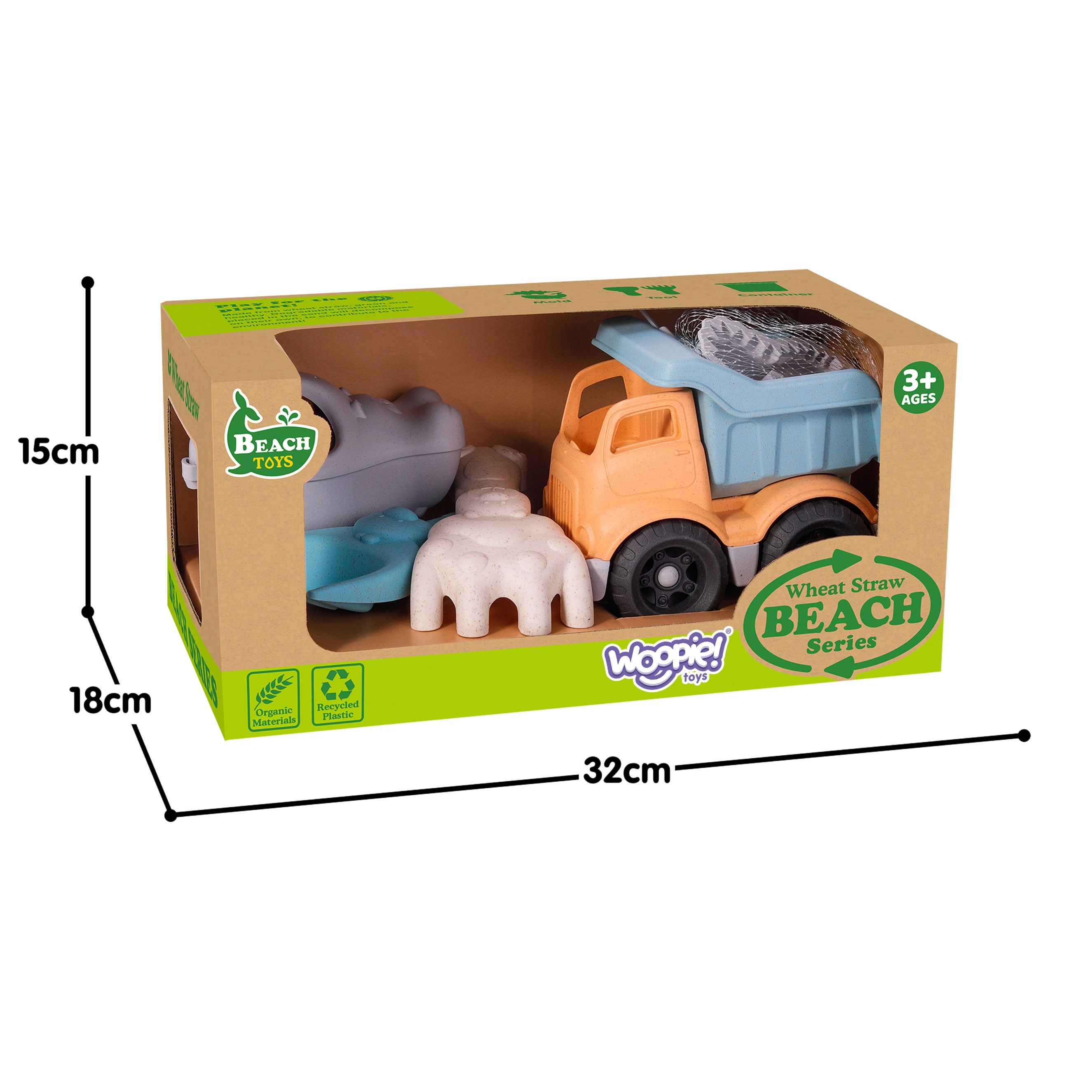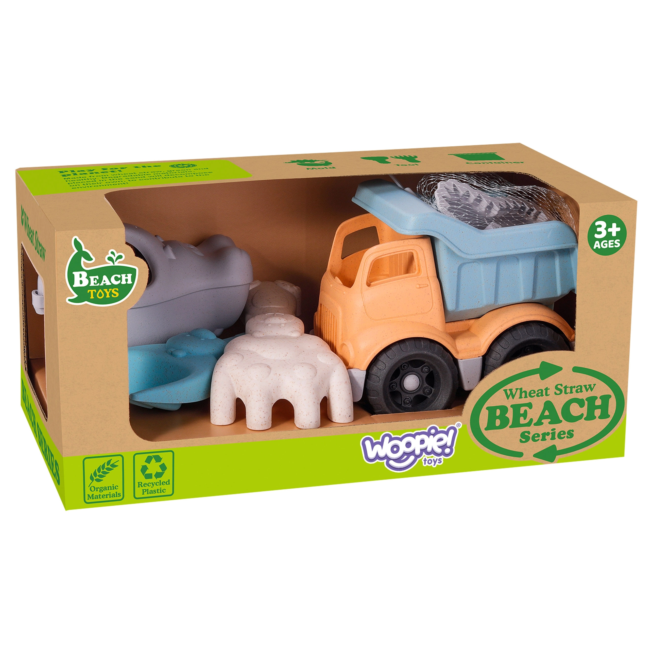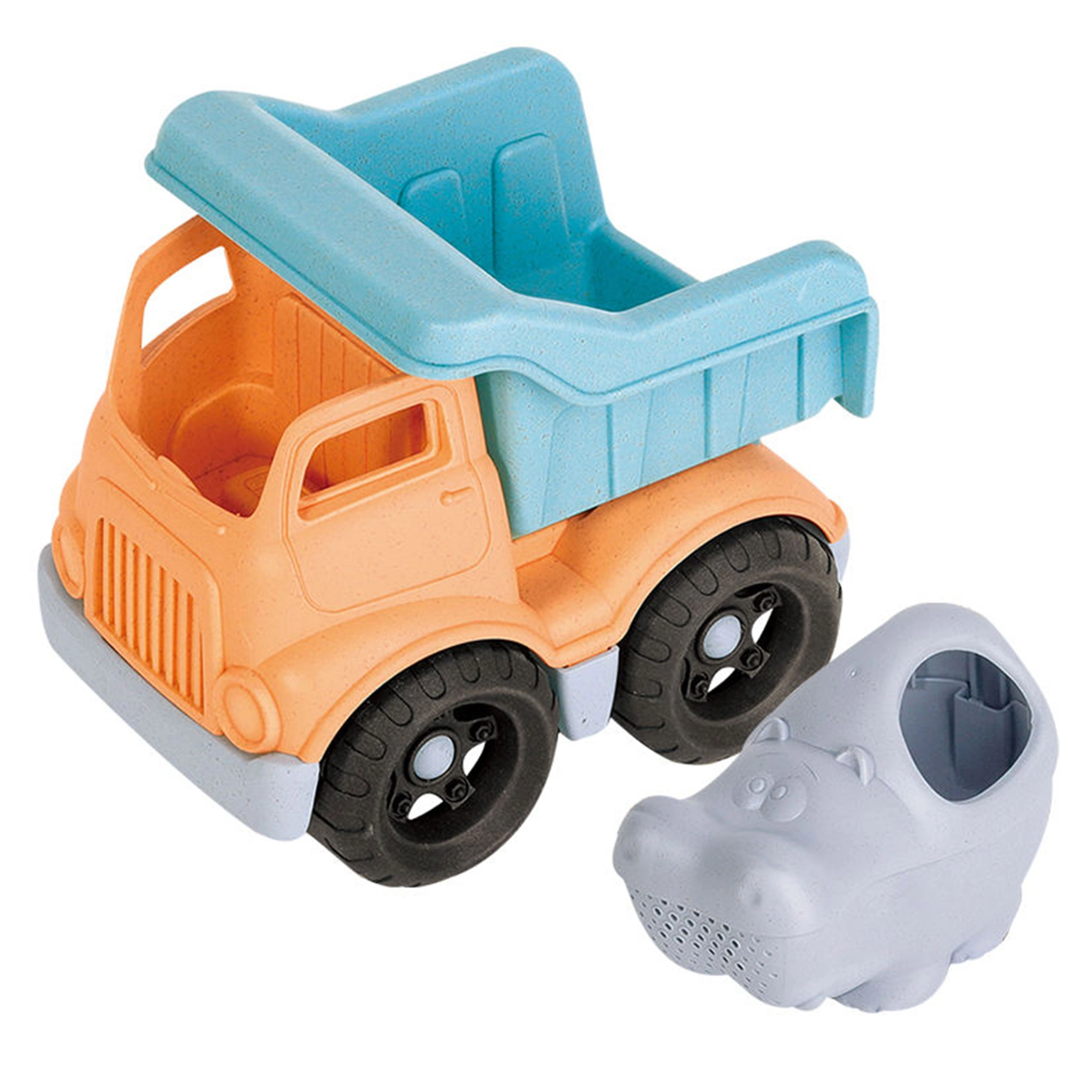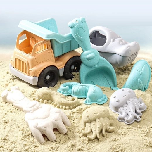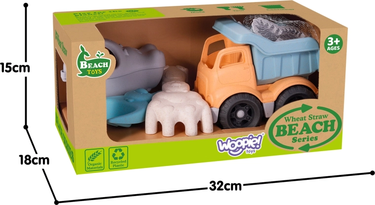 Praktický vyklápač s výklopnou korbou, rozkošná kanvička v tvare hrocha, lopatka, hrable a tri morské formičky zaistia hodiny zábavy pri stavaní, prenášaní a tvorení. Hra so sadou rozvíja jemnú aj hrubú motoriku, koordináciu oko–ruka, priestorové myslenie a spoločenské zručnosti.