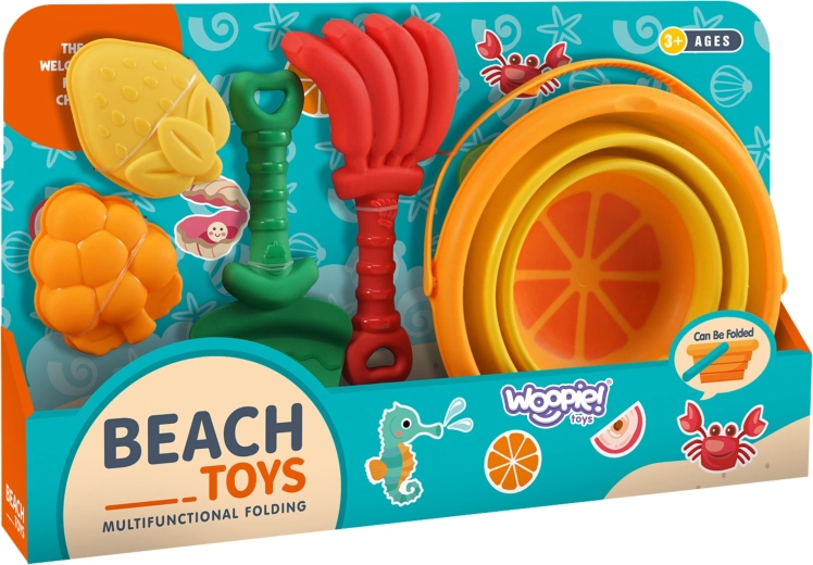 Farebný plážový set do piesku s motívom tropického ovocia od značky WOOPIE je ideálny pre deti do pieskoviska aj na pláž. Ponúka kompaktný dizajn, odolný a bezpečný plast a zábavné tvary náradia aj formičiek, ktoré podporujú kreativitu a jemnú motoriku.