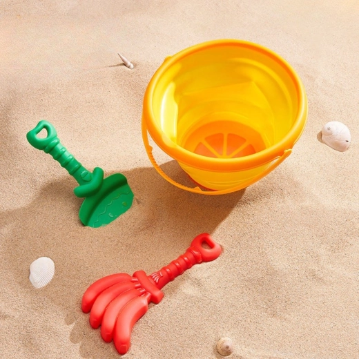 Tento všestranný set na piesok spája praktické prevedenie so zábavným tropickým motívom. Skladacie vedierko šetrí miesto v batohu alebo kočíku a ľahké náradie sa deťom dobre drží. Vďaka pevnému a bezpečnému materiálu je set skvelou voľbou na každodenné hranie na pláži aj v pieskovisku.