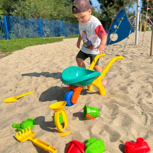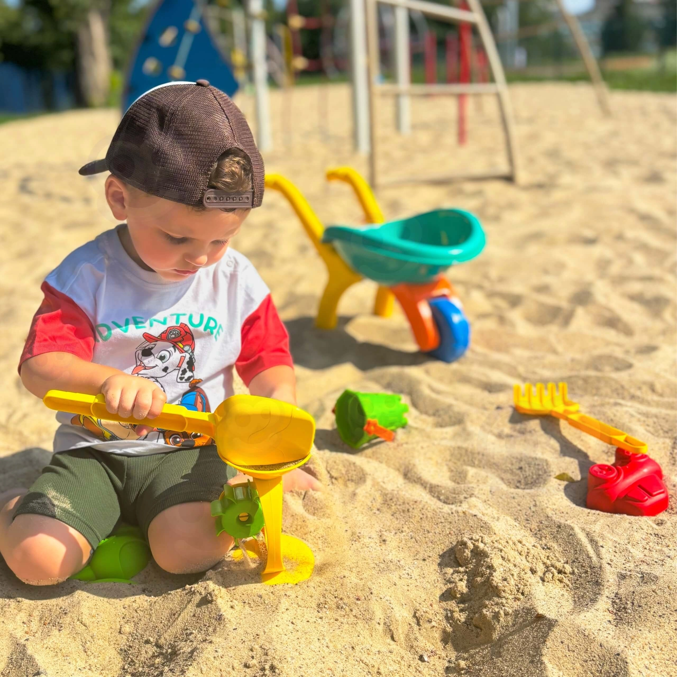 Objavte zábavu, ktorá rozvíja zručnosti! Tento pieskový a záhradný set od WOOPIE kombinuje pohyb, tvorenie aj učenie. Vďaka fúrikku, mlynčeku, kanvičke a ďalším doplnkom deti ľahko prenesú piesok či zeminu, vytvoria bábovky a vyskúšajú vodné experimenty.