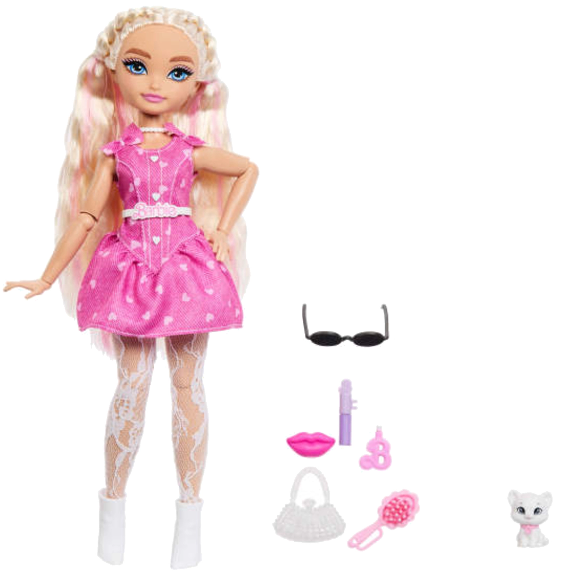 Súčasťou setu je 7 doplnkov: okuliare, kabelka s leskom, kefa, rúž, „špirála“, zrkadielko a rozkošná figúrka mačiatka. Deti sa tak môžu hrať na svet módy, krásy a influencerov, rozvíjať fantáziu aj jemnú motoriku.