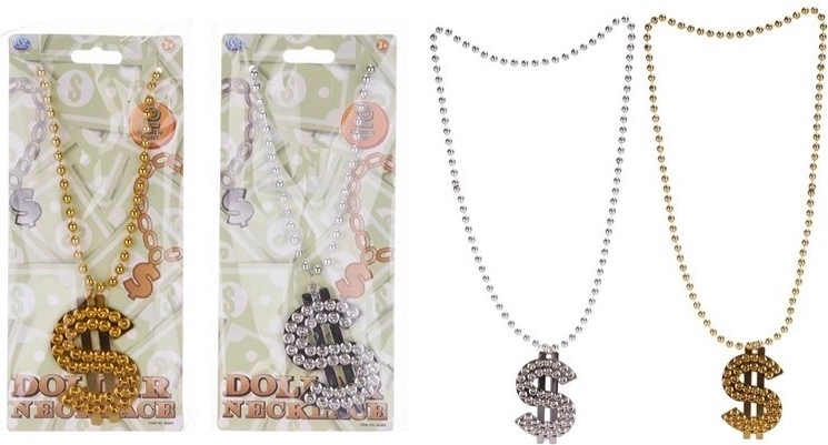 Štýlový dolárový náhrdelník je výrazný doplnok na párty, karneval aj tematické outfity. Vďaka ľahkému prevedeniu sa pohodlne nosí po celý večer a okamžite dodá vášmu looku nápaditý a odvážny štýl.