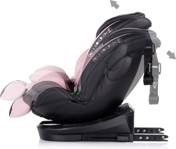 Nastaviteľná opierka hlavy v 11 krokoch, 4 polohy sklonu a mäkké vložky zaistia správnu oporu od novorodenca po školáka.