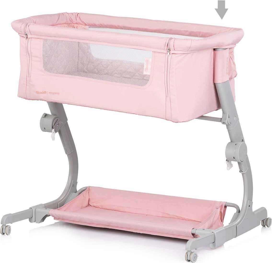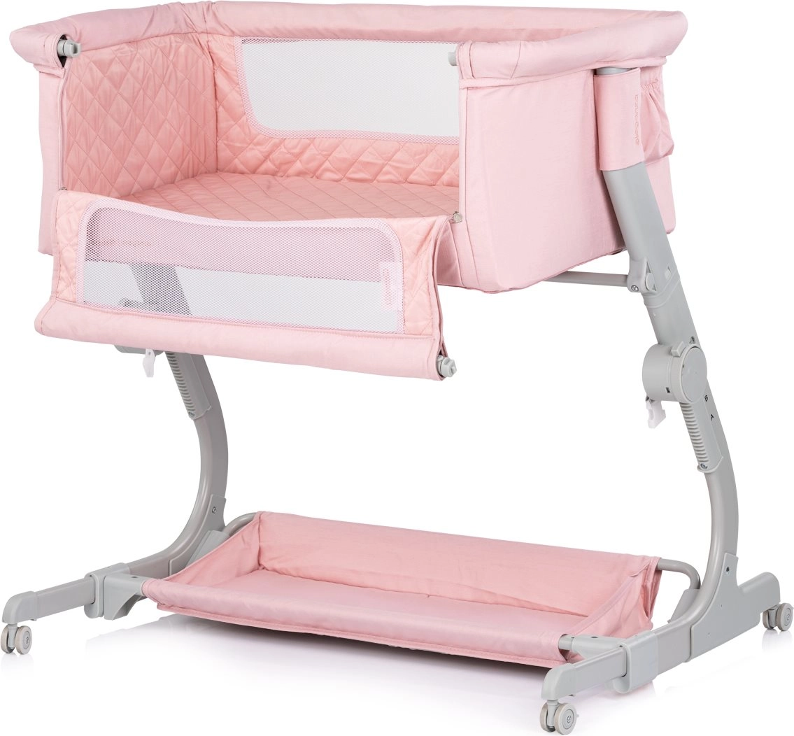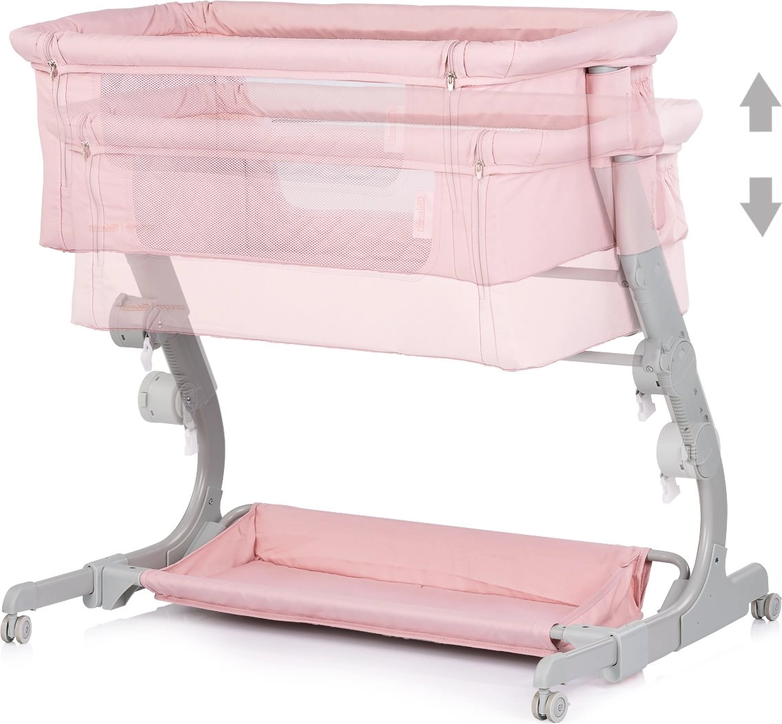 Praktická detská postieľka a prístelka 2v1 CHIPOLINO Eleganza v jemnom ružovom odtieni zaistí bábätku bezpečné a útulné miesto na spánok aj odpočinok. Vďaka 3 úrovniam výšky, sieťovaným bokom pre dohľad a prúdenie vzduchu, uzamykateľným kolieskam a ľahkej, ale stabilnej kovovej konštrukcii je ideálna na každodenné používanie aj cestovanie – vrátane kompaktnej cestovnej tašky.