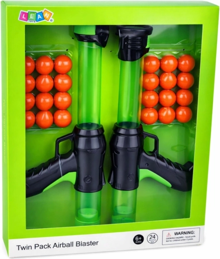 Zábavná a bezpečná akčná hra pre deti: sada dvoch pištolí Airball Blaster s 24 mäkkými penovými guličkami. Blastre majú manuálny pružinový mechanizmus bez potreby batérií, ergonomickú rukoväť a sú vyrobené z odolného plastu. Skvelé na aktívne hranie doma aj vonku, rozvíjajú postreh, koordináciu oko–ruka a presnosť.