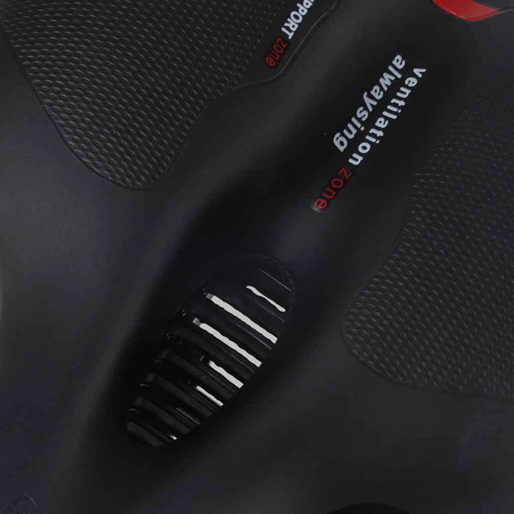 Centrálny ventilačný kanál uľavuje od tlaku v citlivých zónach a zlepšuje prúdenie vzduchu pre vyšší komfort pri dlhších jazdách.