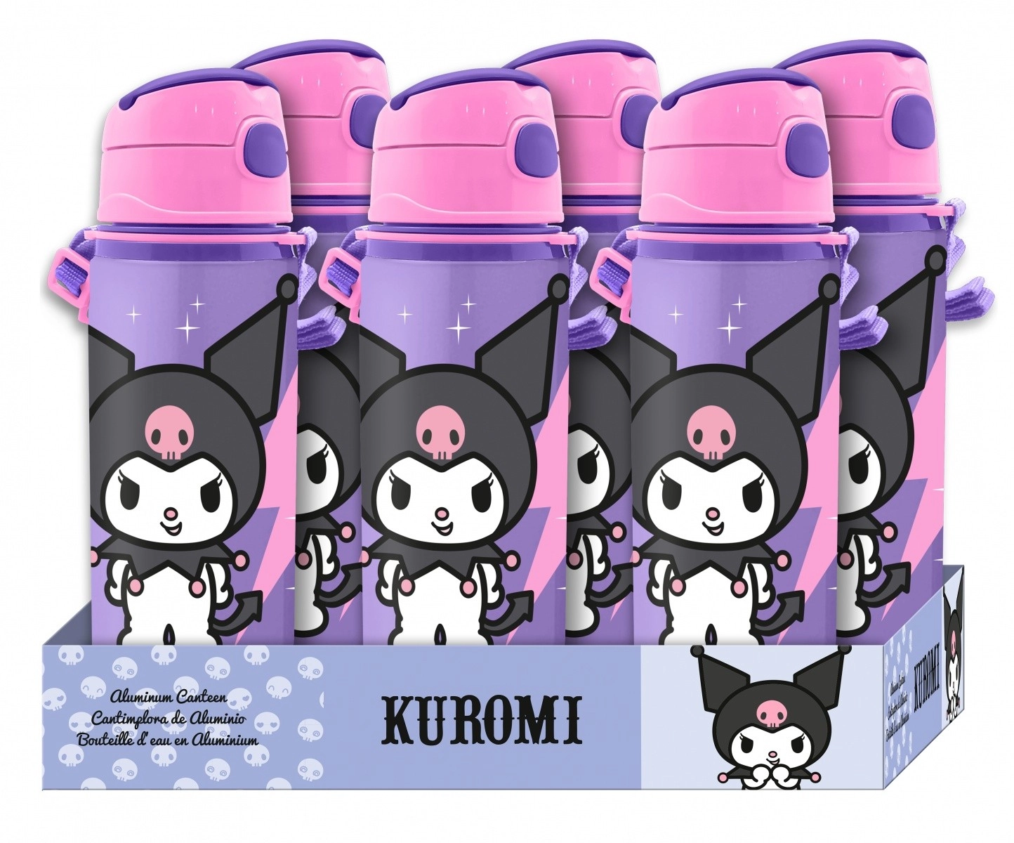 Ľahká a odolná hliníková fľaša na pitie s objemom 600 ml s motívom KUROMI je ideálna pre deti na výlety, škôlku aj každodenné používanie. Ponúka nízku hmotnosť, praktické používanie a dostatočný objem na celý deň.