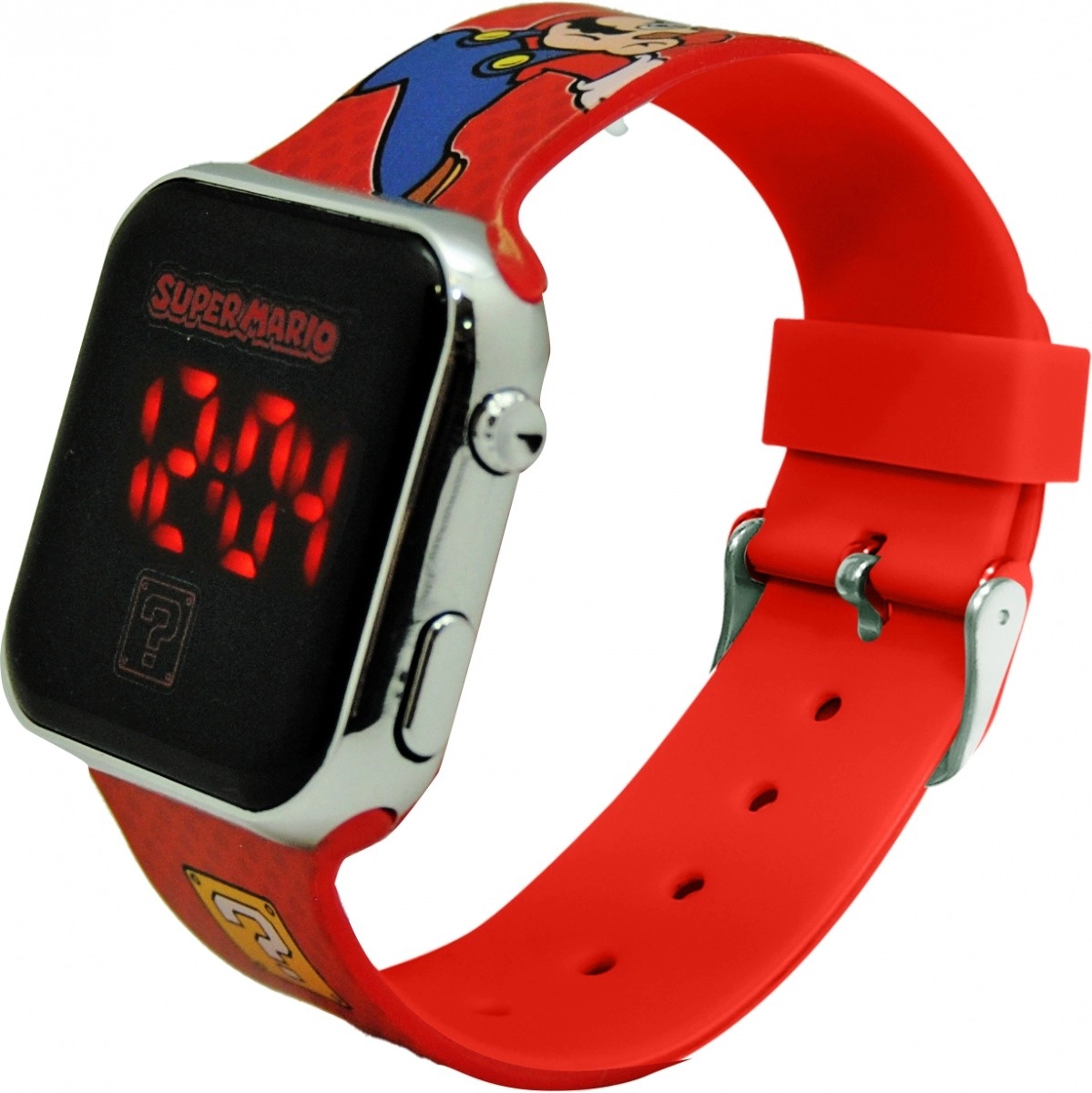 Objavte zábavné a praktické detské hodinky s témou Super Mario. Jasné červené LED číslice zaisťujú rýchle a prehľadné zobrazenie času, zatiaľ čo ľahké prevedenie a príjemný silikónový remienok sa pohodlne nosia po celý deň.