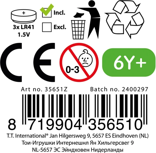 - Svetelné efekty: zabudované LED na batérie pre efektné hranie.