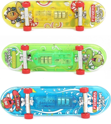 Skvelý na učenie základných aj pokročilejších trikov na stole či rampe. Vďaka kompaktnému rozmeru 9,5 cm je ideálny na cesty, do školy aj domov. Vybrať si môžete z troch farebných variantov (zelená, žltá, modrá) – každý s atraktívnou grafikou.